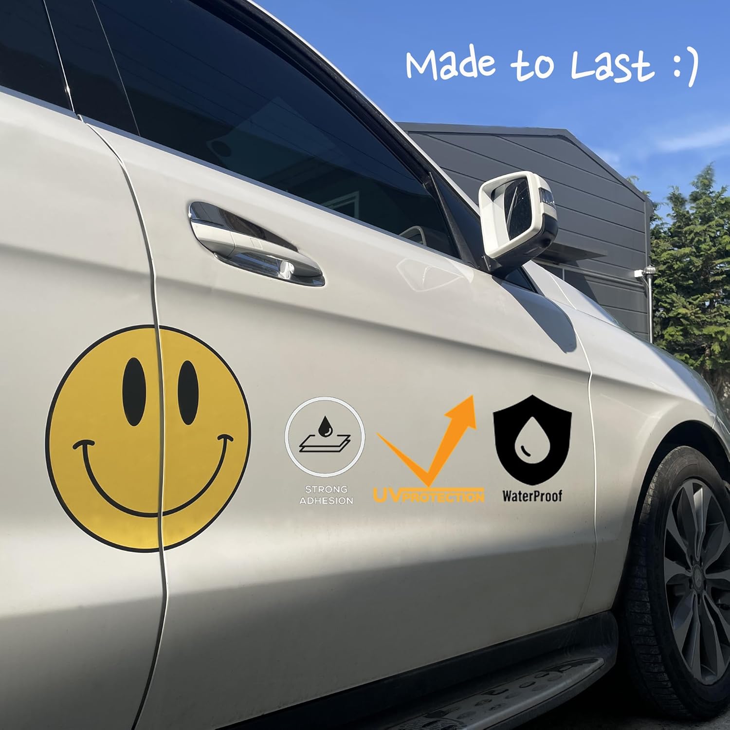 Bring a cheerful and eye-catching vibe to your space with our 12-inch Smiley Face Wall Decals. These decals are designed to add personality and fun to any room, whether you're looking to update your home, car, or office. Each piece is made from high-quality, durable vinyl, ensuring long-lasting use on both indoor and outdoor surfaces.