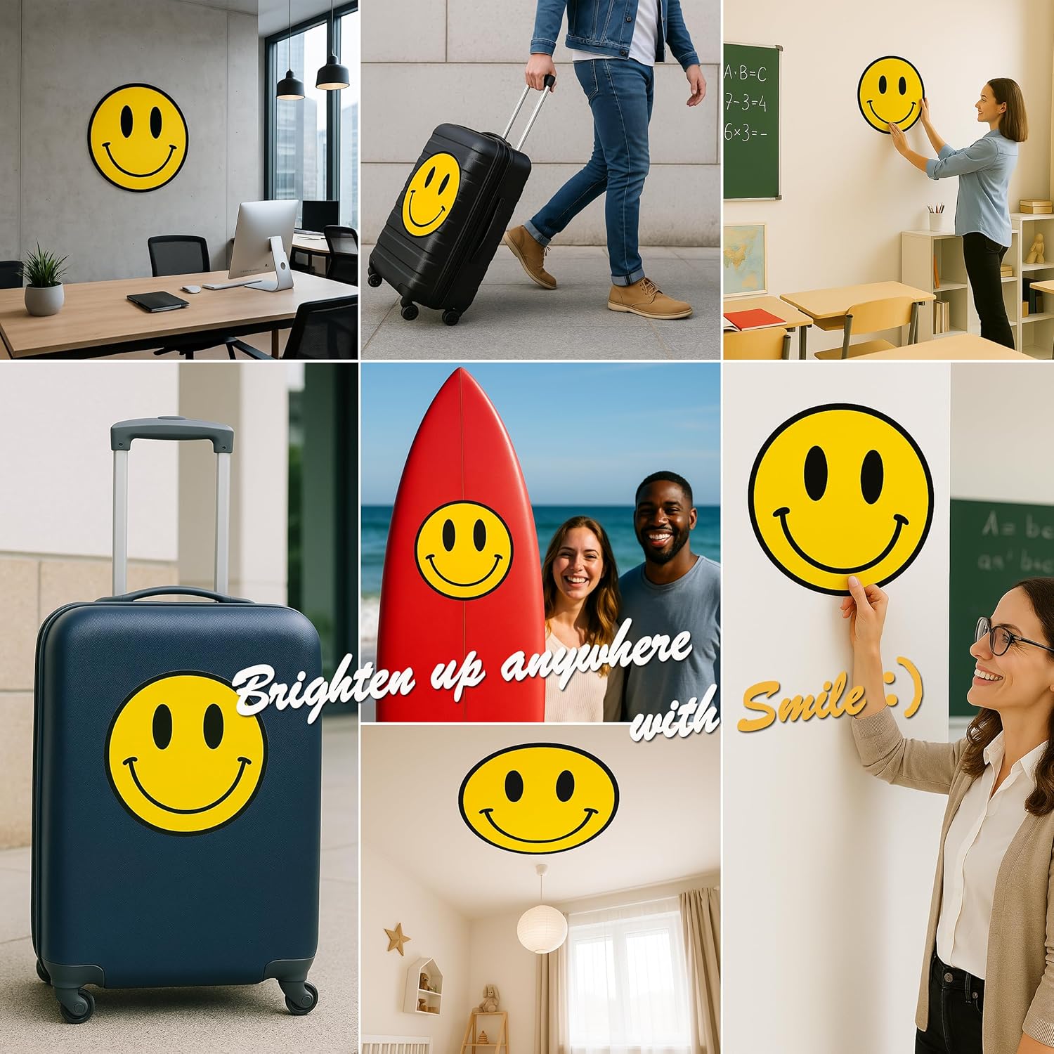 Whether you're decorating a wall, customizing a window, or adding flair to your laptop and luggage, these smiley face murals offer a versatile and stylish solution. Their eco-friendly ink ensures a safe and sustainable option for all your creative needs, while the peel-and-stick design makes installation simple and hassle-free. Add a touch of joy to your space today with our stylish, removable wall stickers that are as practical as they are beautiful.