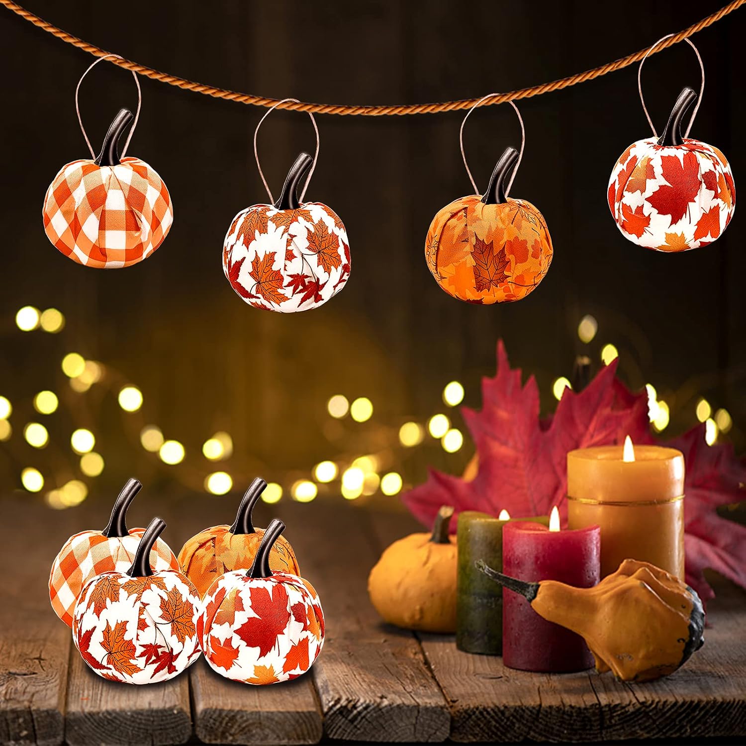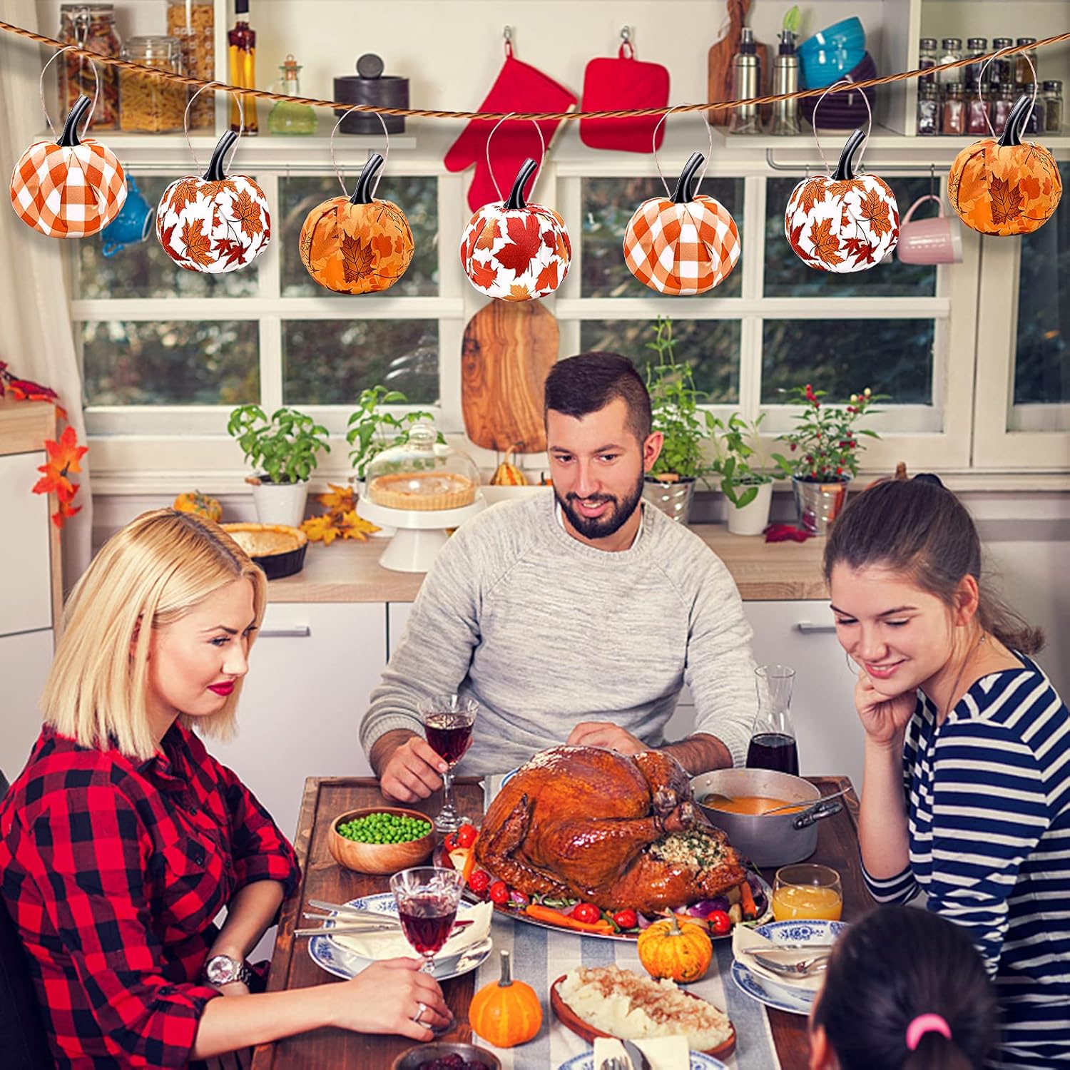 Elevate your home decor with these beautifully crafted hanging pumpkin ornaments. Each piece is designed with care, showcasing vivid maple leaf gingham patterns that bring a touch of rustic charm and seasonal warmth. Perfect for autumn or Thanksgiving, these decorations add a cozy, festive ambiance to any room or space.