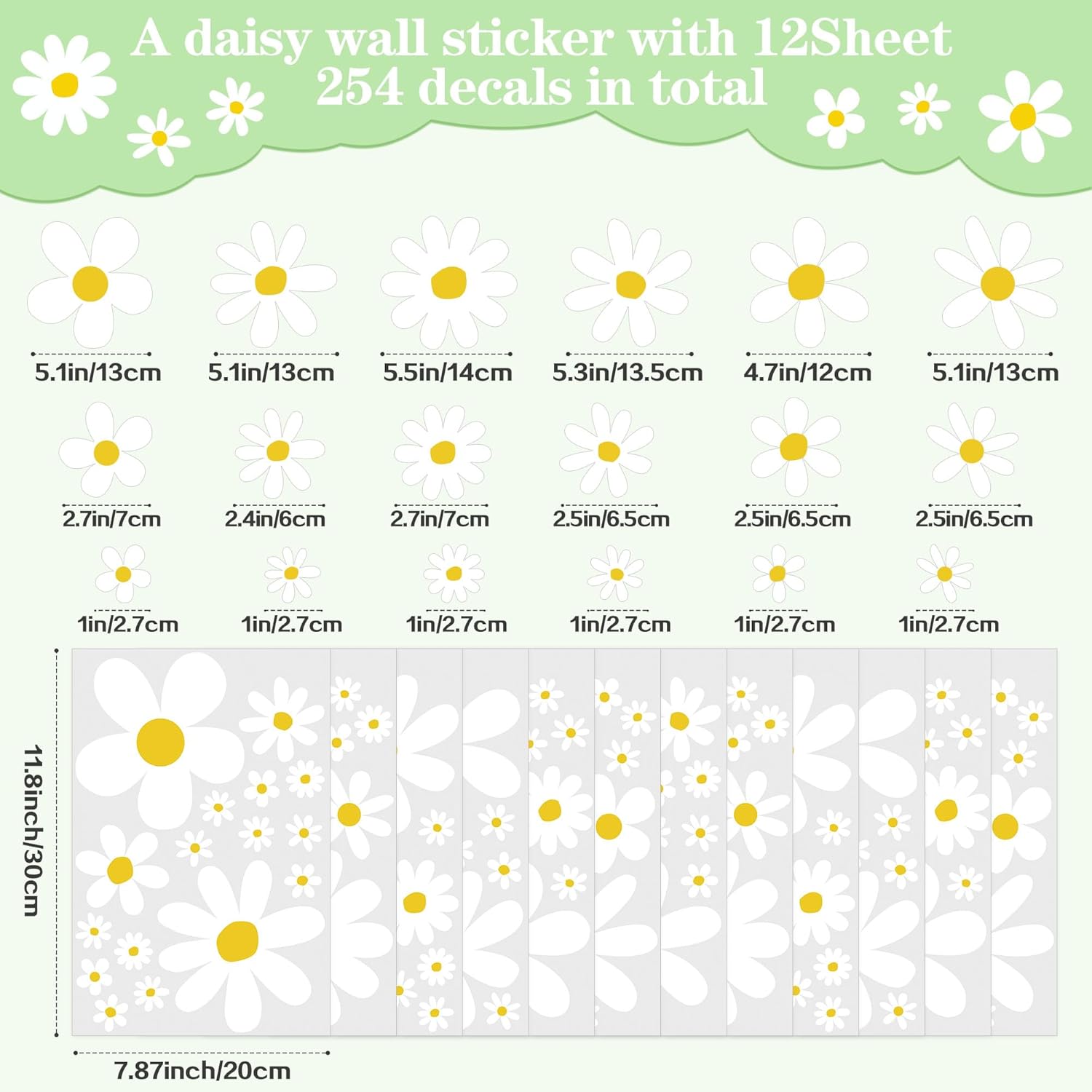 Transform any room with our 12 sheets of beautiful daisy wall decals. These eye-catching designs bring a boho and retro-inspired aesthetic thatâs perfect for kidsâ bedrooms, playrooms, or even your living room. With a variety of shapes and colors, you can create unique floral patterns that reflect your personal style and make any space feel more vibrant and welcoming.
