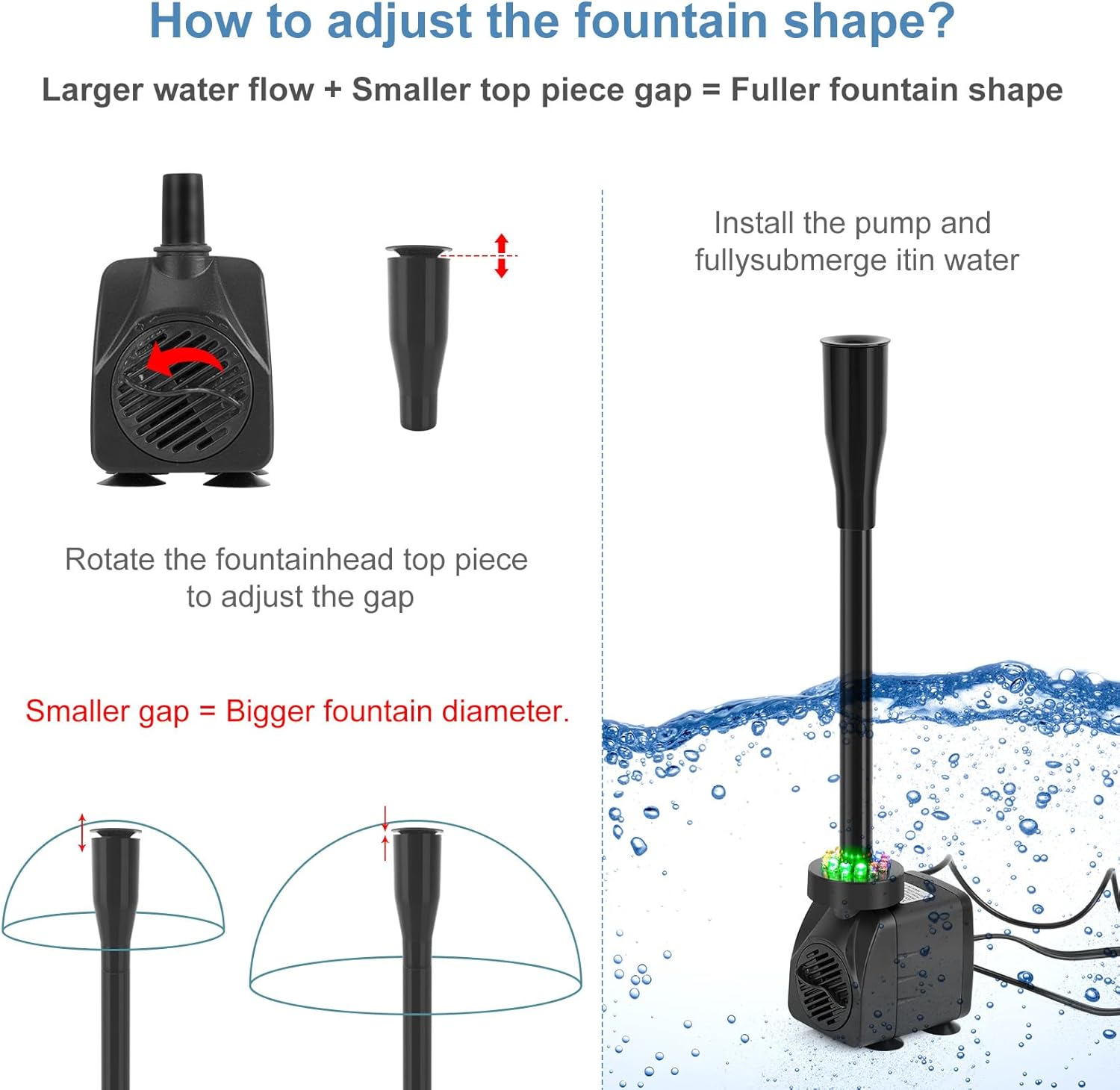 Add a touch of elegance and functionality to your outdoor or indoor area with this pond fountain pump. It's not just a pump â itâs a statement piece that brings light, movement, and life to your water feature. Whether you're seeking a tranquil atmosphere or a dynamic display, this pump is designed to meet your needs with ease and efficiency.