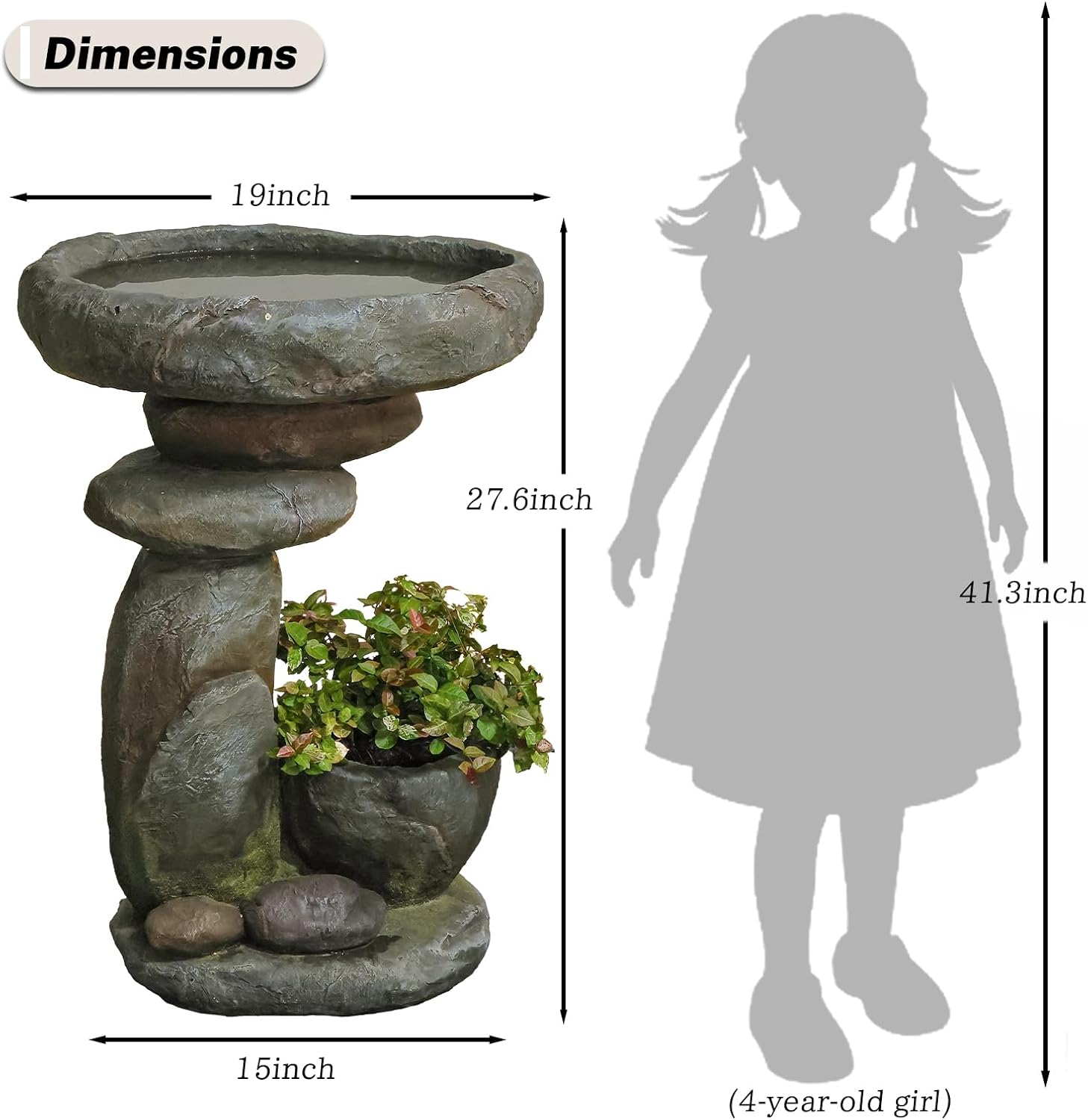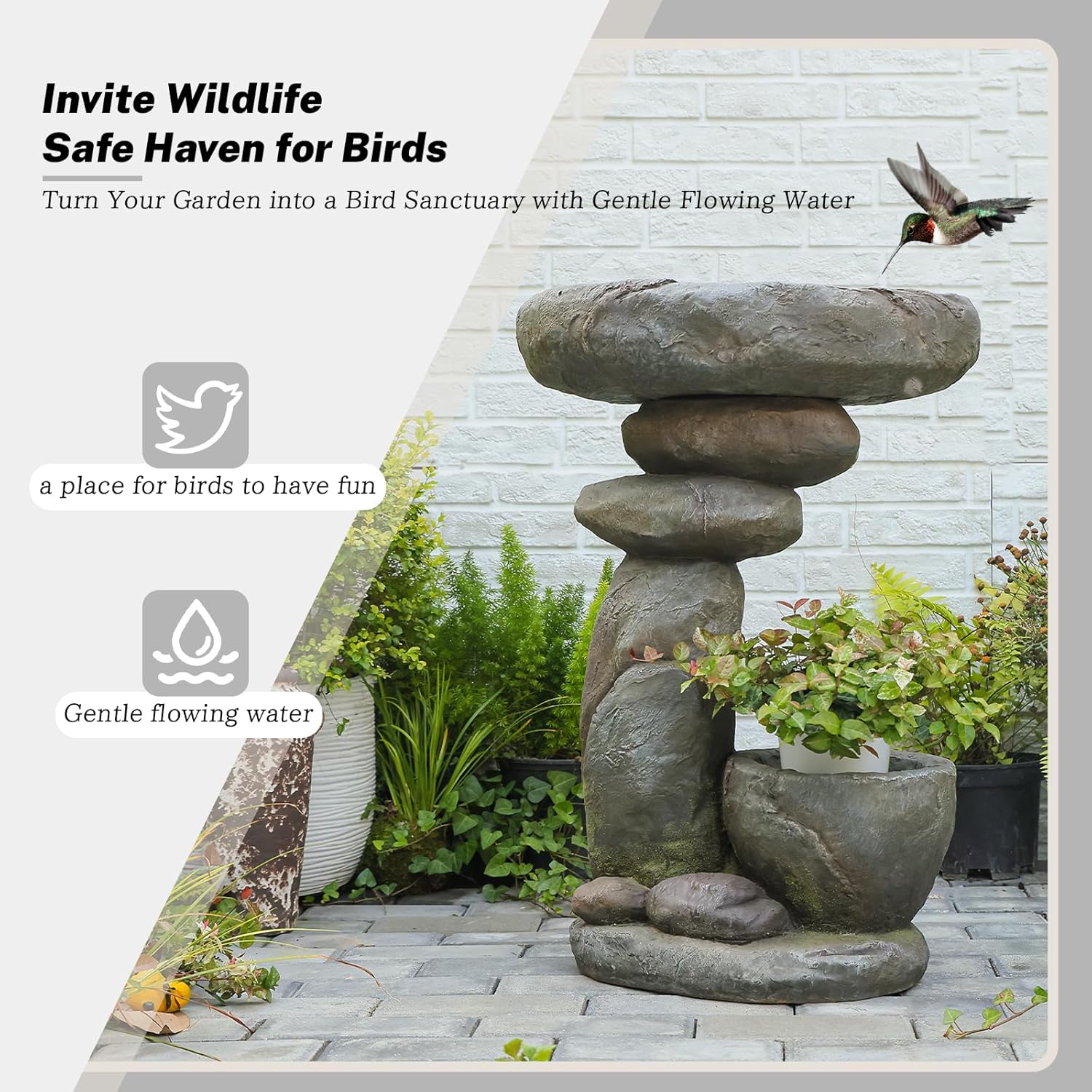 This 27.6-inch tall vertical fountain brings a touch of serenity and style to your garden, patio, or entryway. Its sleek, space-saving design is ideal for those who want to enhance their outdoor space without sacrificing aesthetics or functionality.