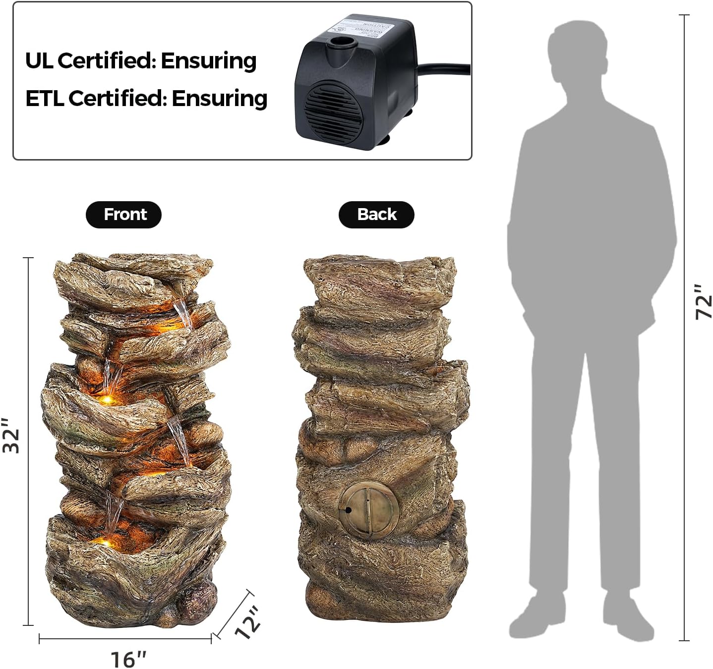 Place this stunning 32-inch fountain in your garden or yard and enjoy the gentle sounds of flowing water and the soft light that enhances your outdoor experience. It's perfect for those who want a natural, relaxing focal point in their outdoor decor, combining both beauty and tranquility.