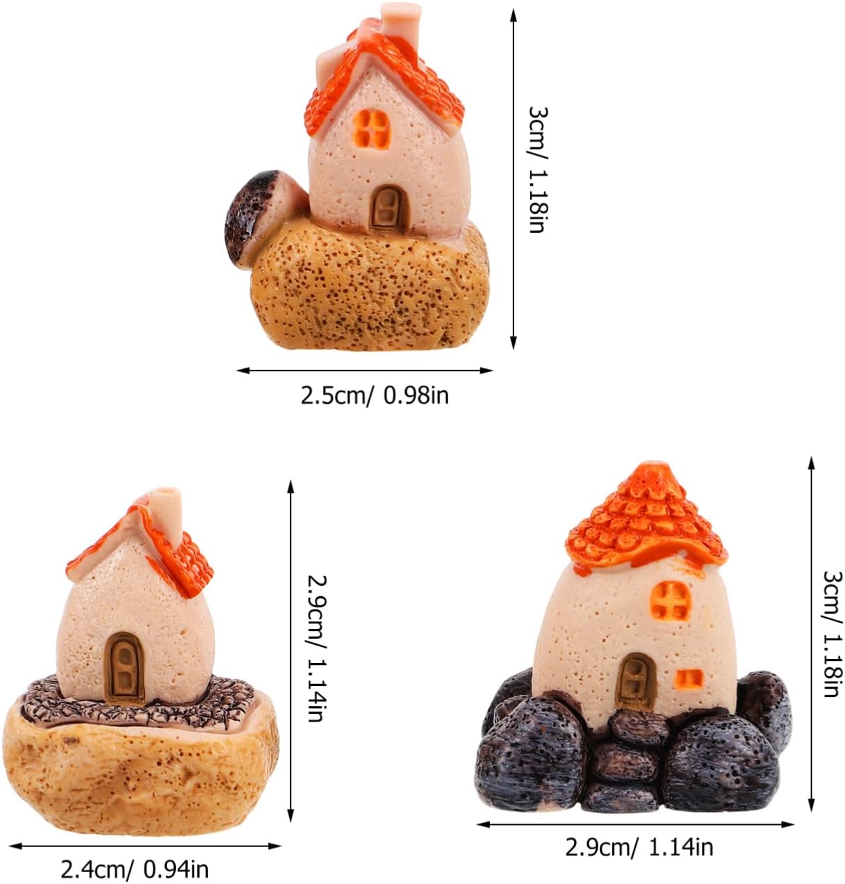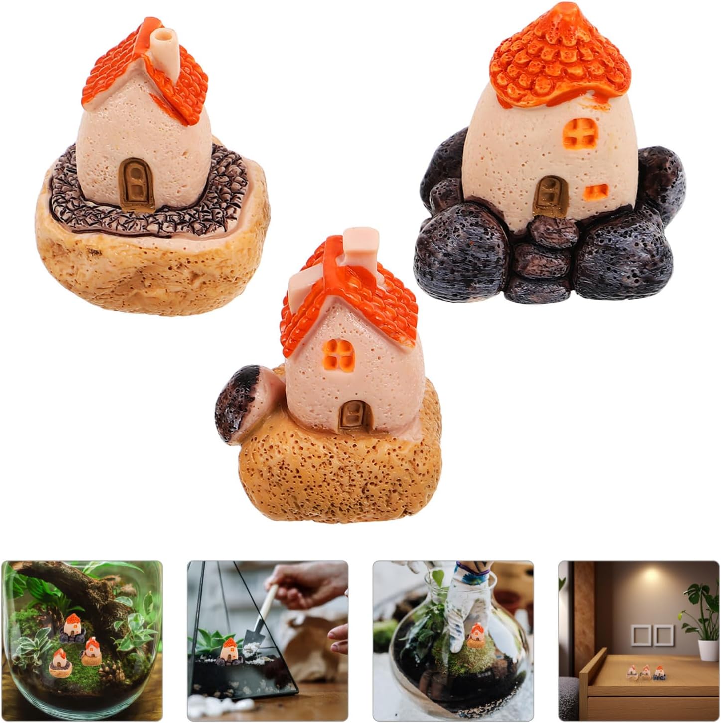 These 3pcs miniature house resin decorations are beautifully crafted to bring charm and character to any indoor or outdoor space. Their delicate design and durable construction make them ideal for enriching your fairy garden, terrarium, or bonsai collection.