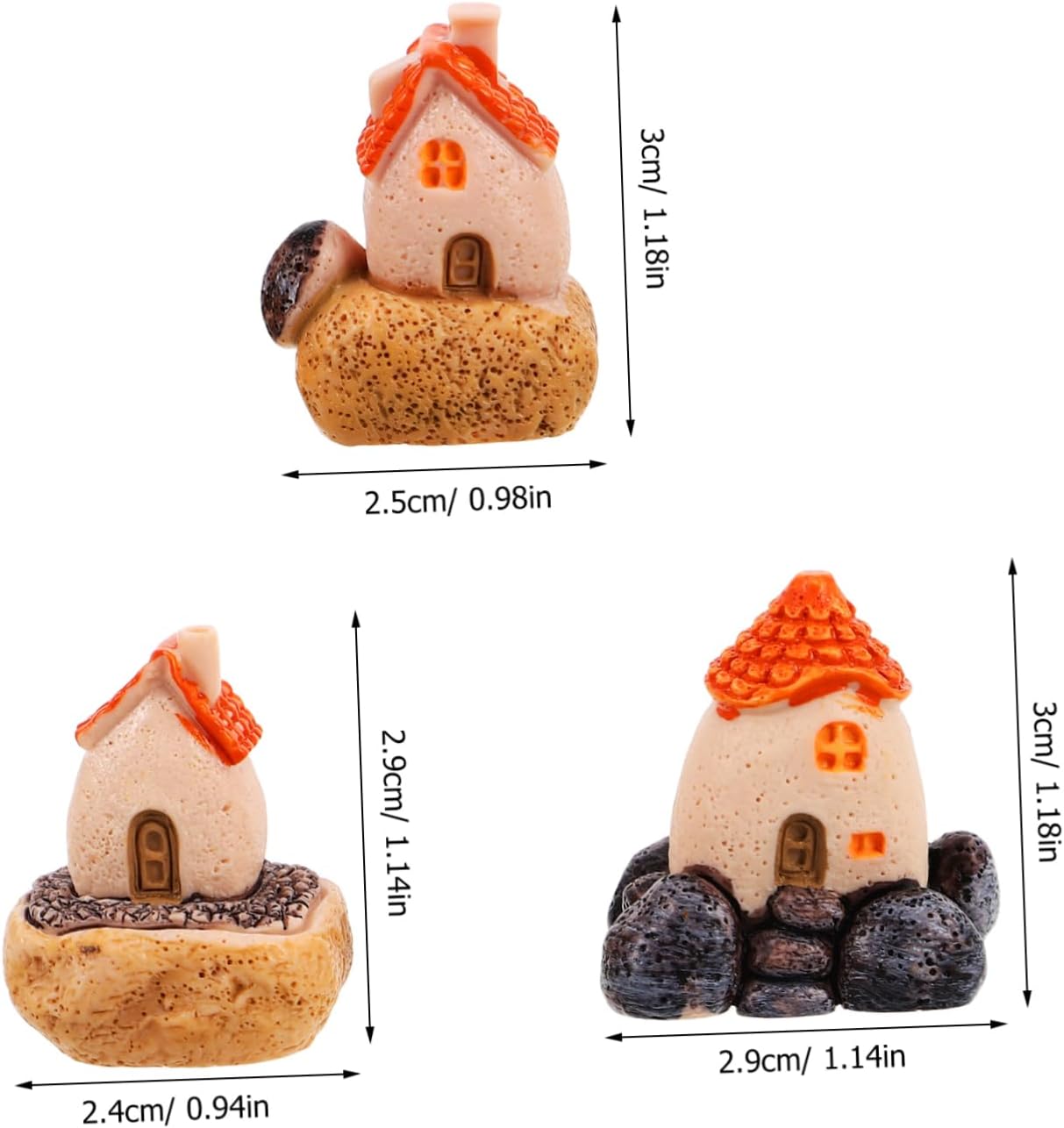 These 3pcs miniature resin houses are more than just decorative piecesâtheyâre a statement of style and imagination. Meticulously crafted from high-quality resin, theyâre built for longevity and offer a timeless charm to any setting. Perfect for fairy gardens, terrariums, or even as a striking addition to your workspace, these tiny houses blend effortlessly into different environments without losing their enchanting appeal.