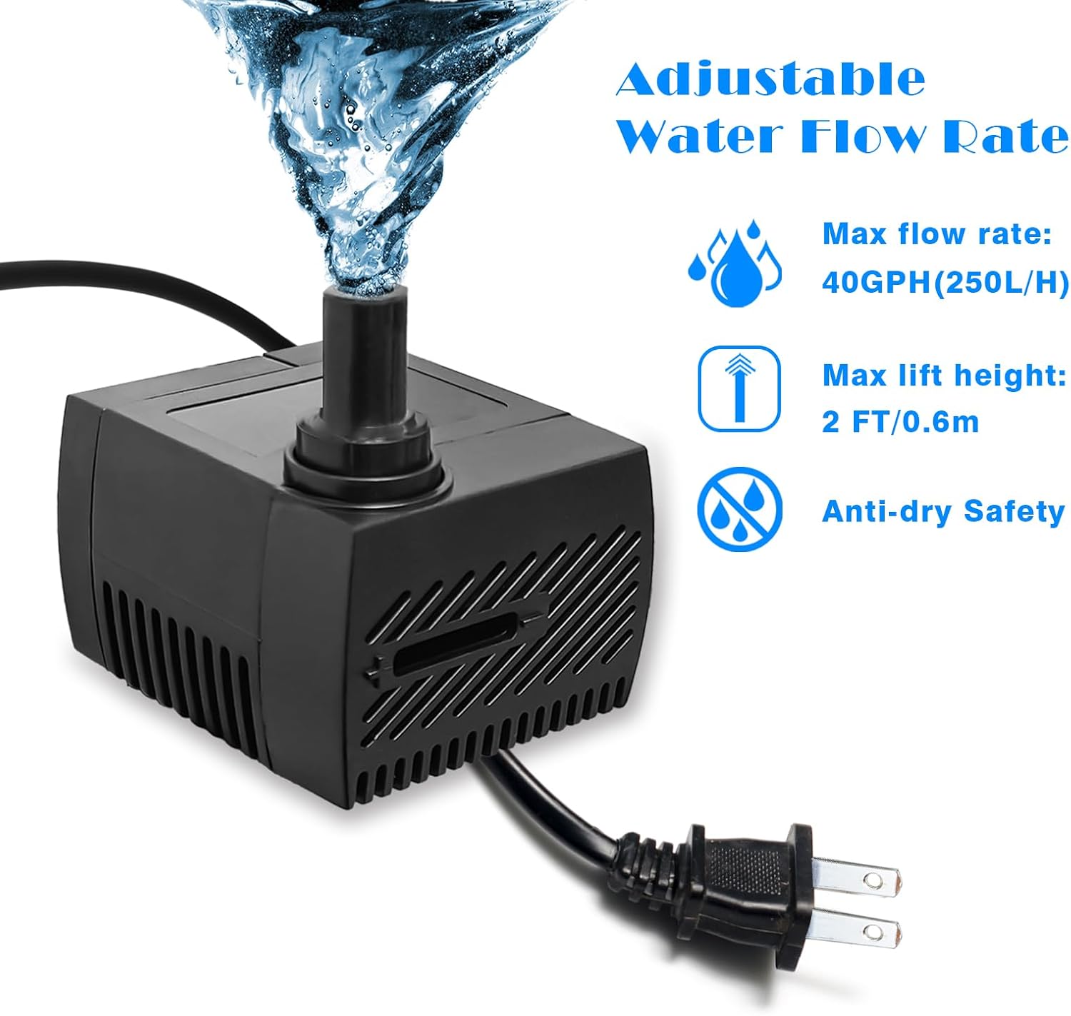 This submersible water pump offers a unique combination of quiet operation, efficient performance, and easy maintenance, making it a must have for anyone who values both aesthetics and reliability. Perfect for use in small ponds, tabletop fountains, and pet water systems, it delivers clean water without causing disruption.