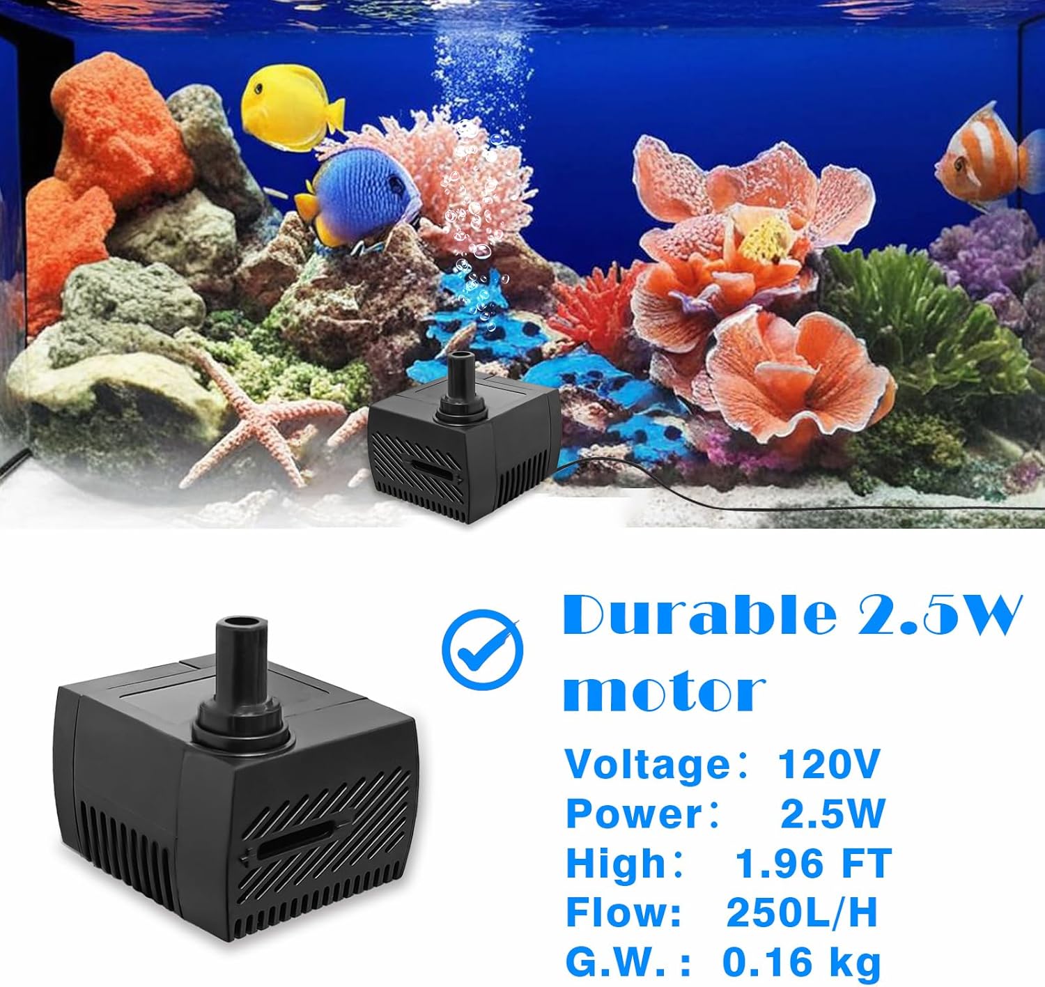 Experience the calming effect of a steady, clean water flow with this quiet aquarium pump. Whether you're a hobbyist looking to enhance your indoor space or a gardener aiming to create a beautiful outdoor feature, this pump adds both style and function to your setup.