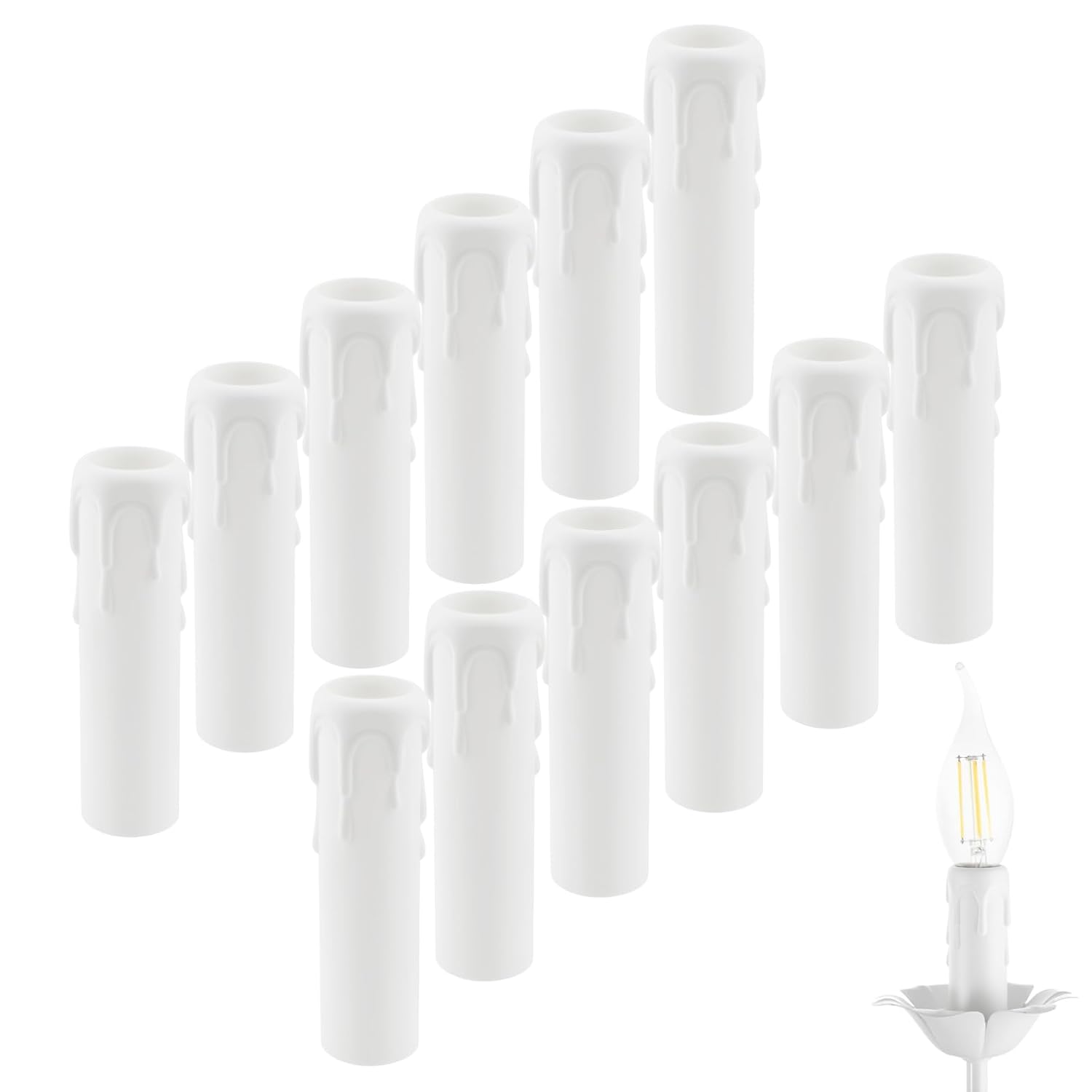 These 12-piece drip candle socket covers add a touch of elegance and vintage charm to your chandelier. Perfect for restoring old fixtures or enhancing the appearance of any lighting setup, they are designed to look like real melting wax, creating a warm and inviting ambiance in your home.