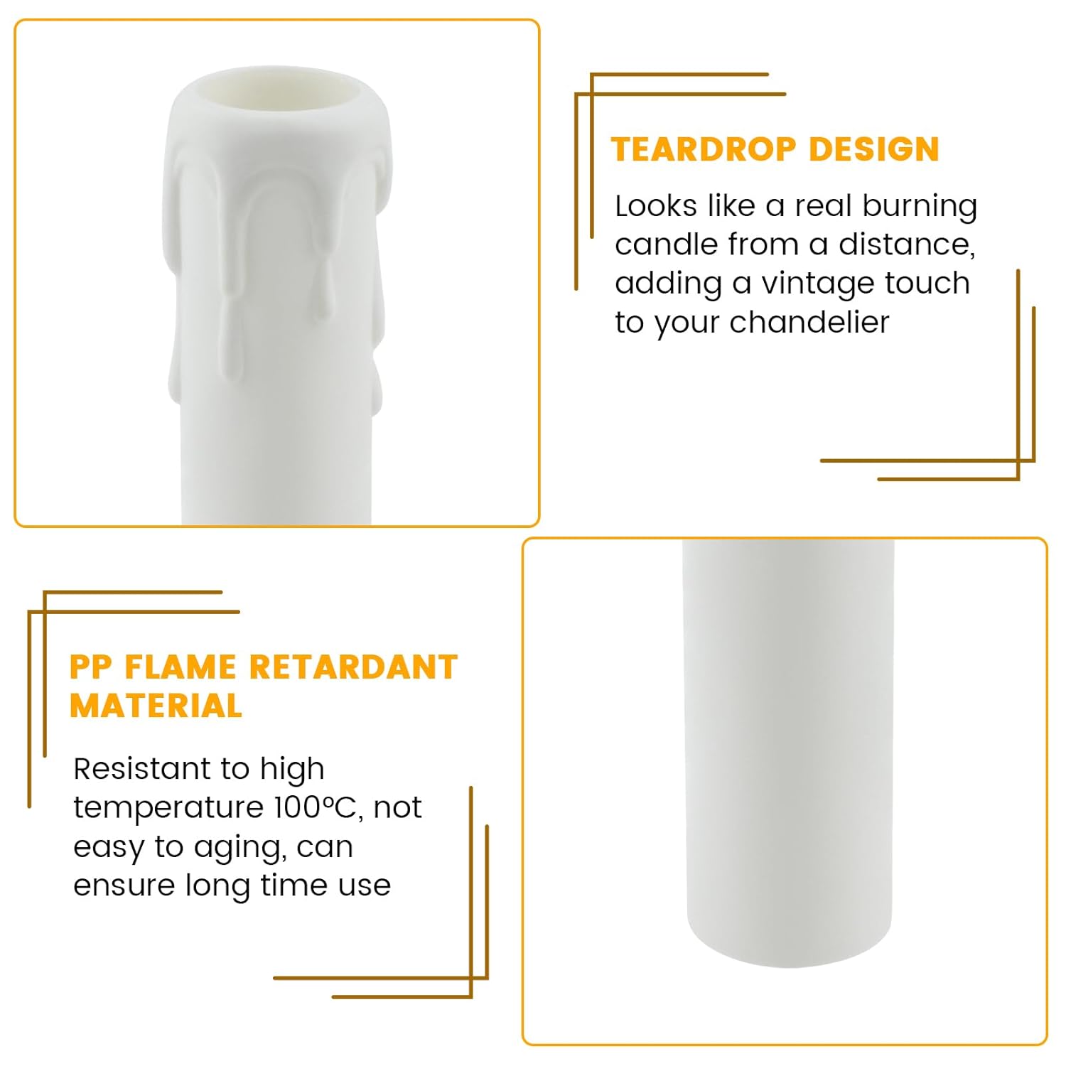 These drip candle socket covers are ideal for adding a classic, cozy vibe to your lighting fixtures. They are versatile, functional, and easy to installâperfect for upgrading your chandelier's appearance or repairing a worn-out fixture. With a modern design that complements vintage and contemporary decor, they bring both style and durability to your home.