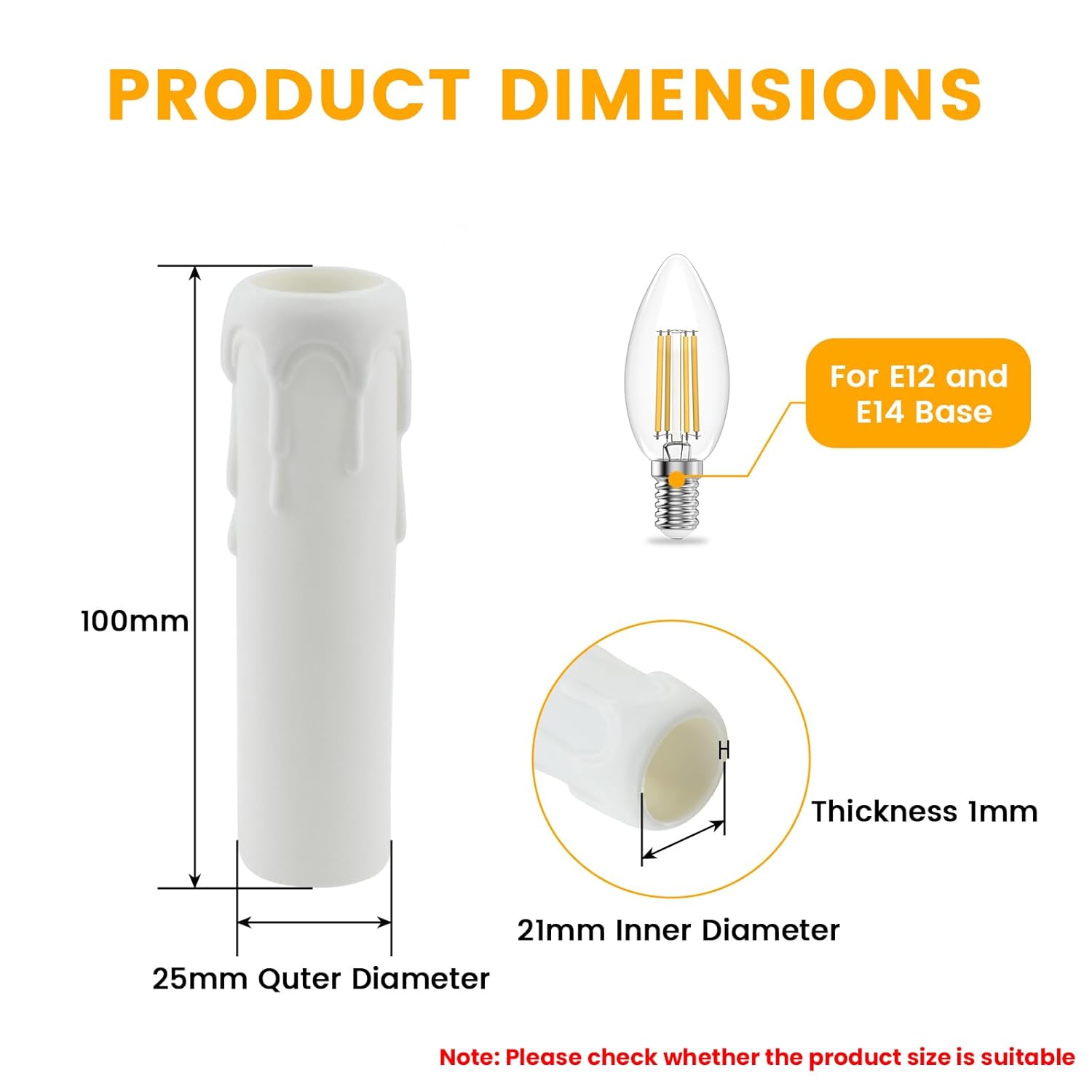 Upgrade your lighting with these drip candle socket covers and enjoy a timeless, elegant look that enhances your home's atmosphere. Ideal for E12 and E14 sockets, they are a practical and stylish addition to any chandelier.