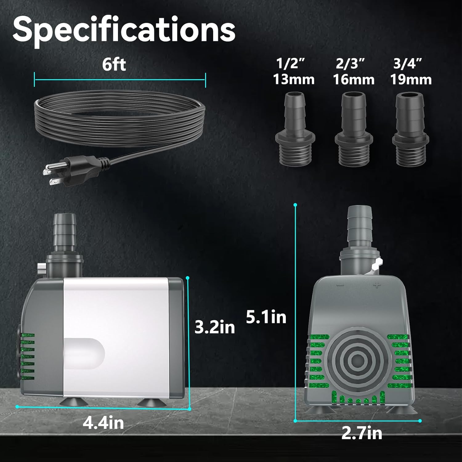 This pump comes with a 1-year warranty, reflecting our confidence in its quality and performance. Its adjustable flow control lets you personalize water movement for your specific needs, while the compact and easy-to-install build ensures a hassle-free setup.