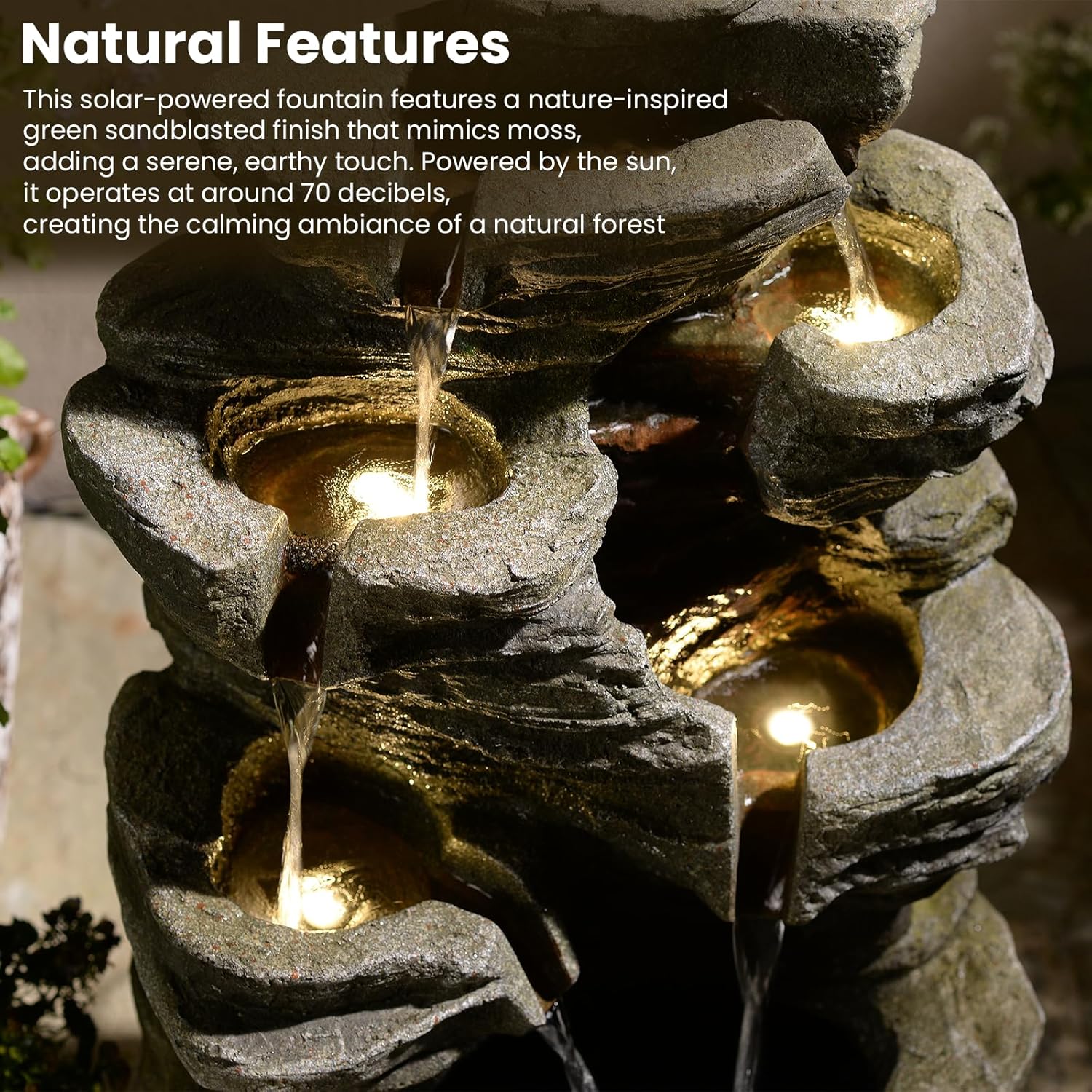 This elegant 6-tier solar water fountain brings a sense of calm and natural beauty to your garden, patio, or deck. Featuring a serene water display and soft, glowing lights, it transforms your outdoor area into a tranquil retreat.