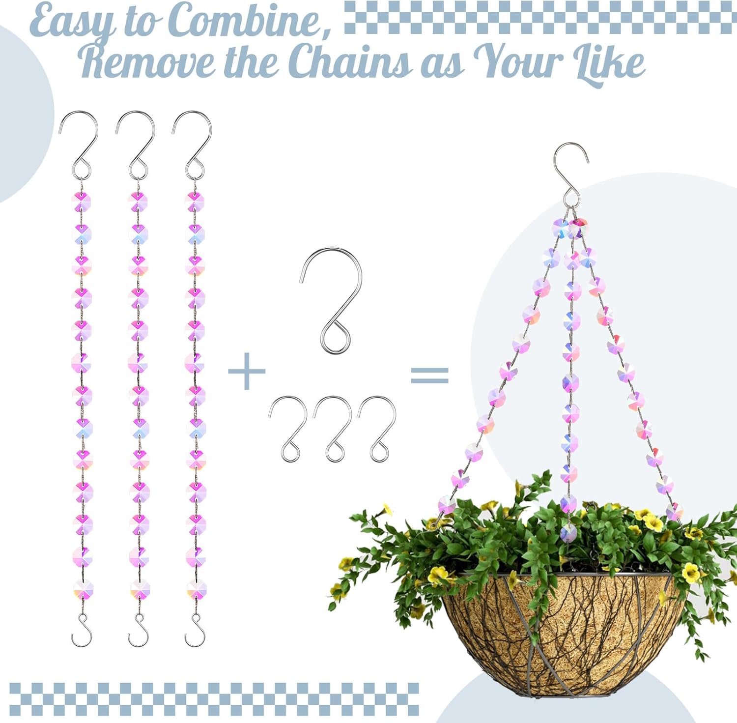 These hangers come with both large and small hooks, giving you flexibility for various uses. Whether you're decorating a balcony, patio, or garden, the chains are easy to install and can be combined for maximum strength and style.
