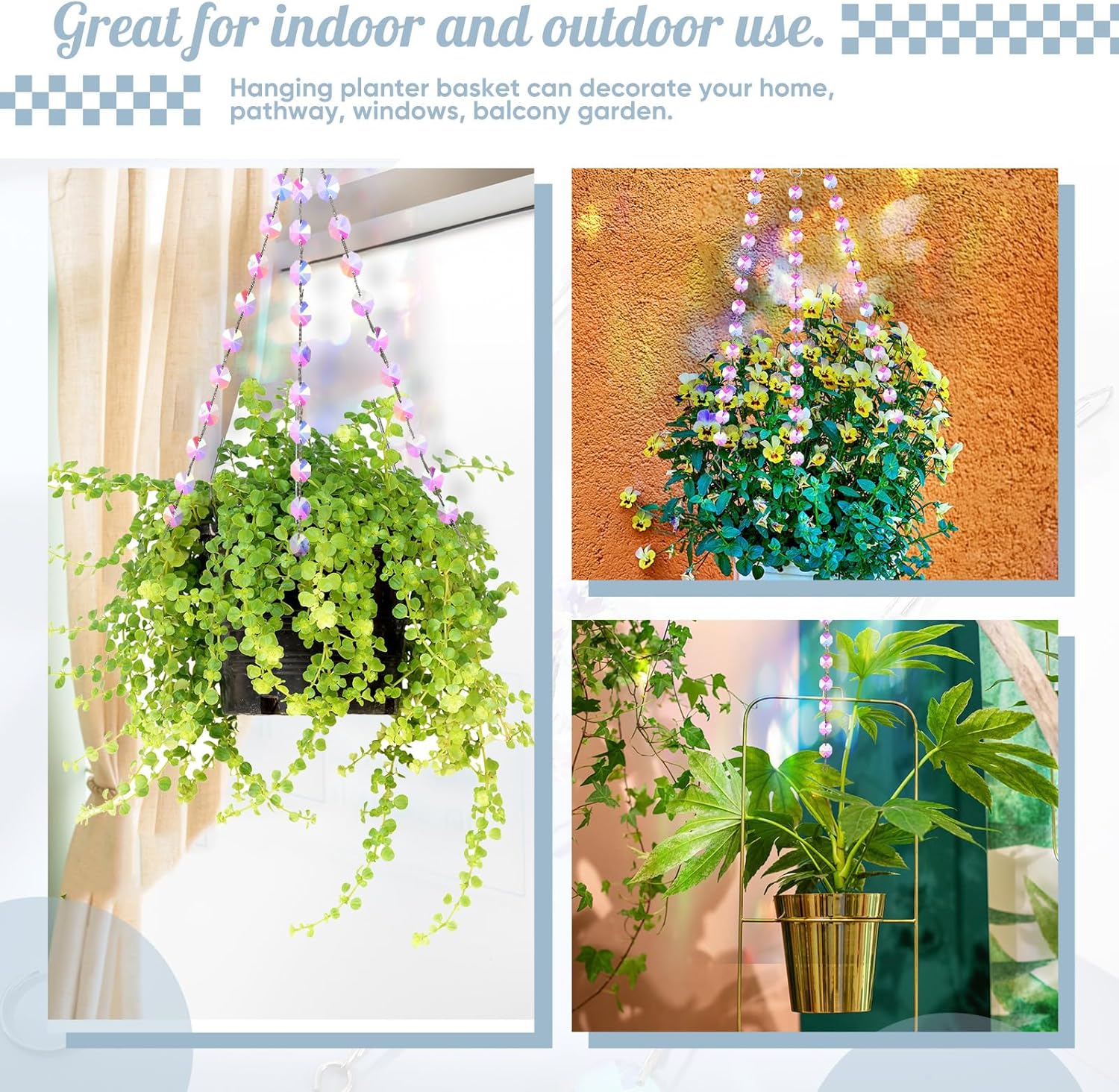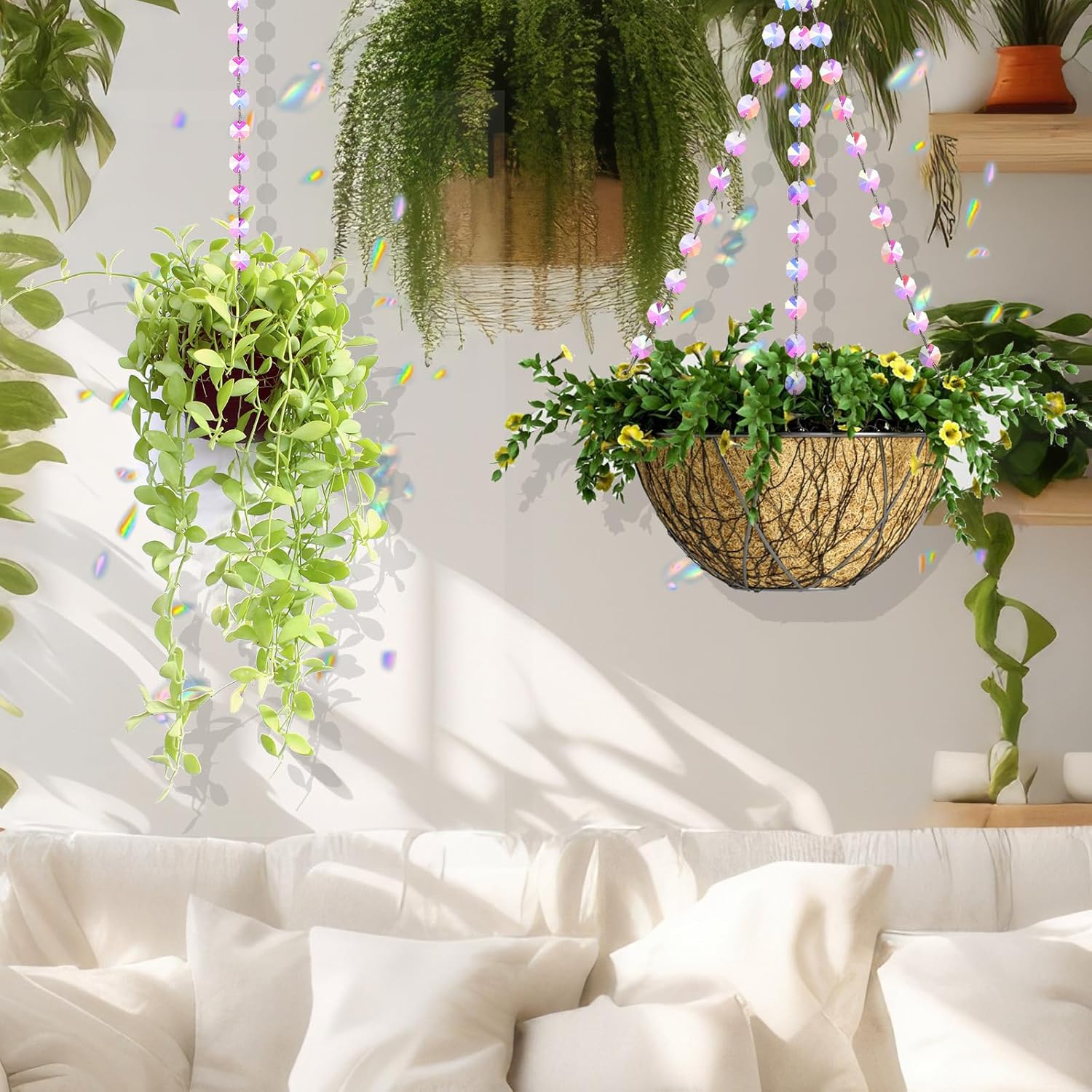 Each of these 12-inch chains is crafted from high-quality crystal glass beads that refract and reflect sunlight beautifully. Whether you're hanging a flower pot, bird feeder, or garden lamp, the magic of light transforms your space into a peaceful oasis.