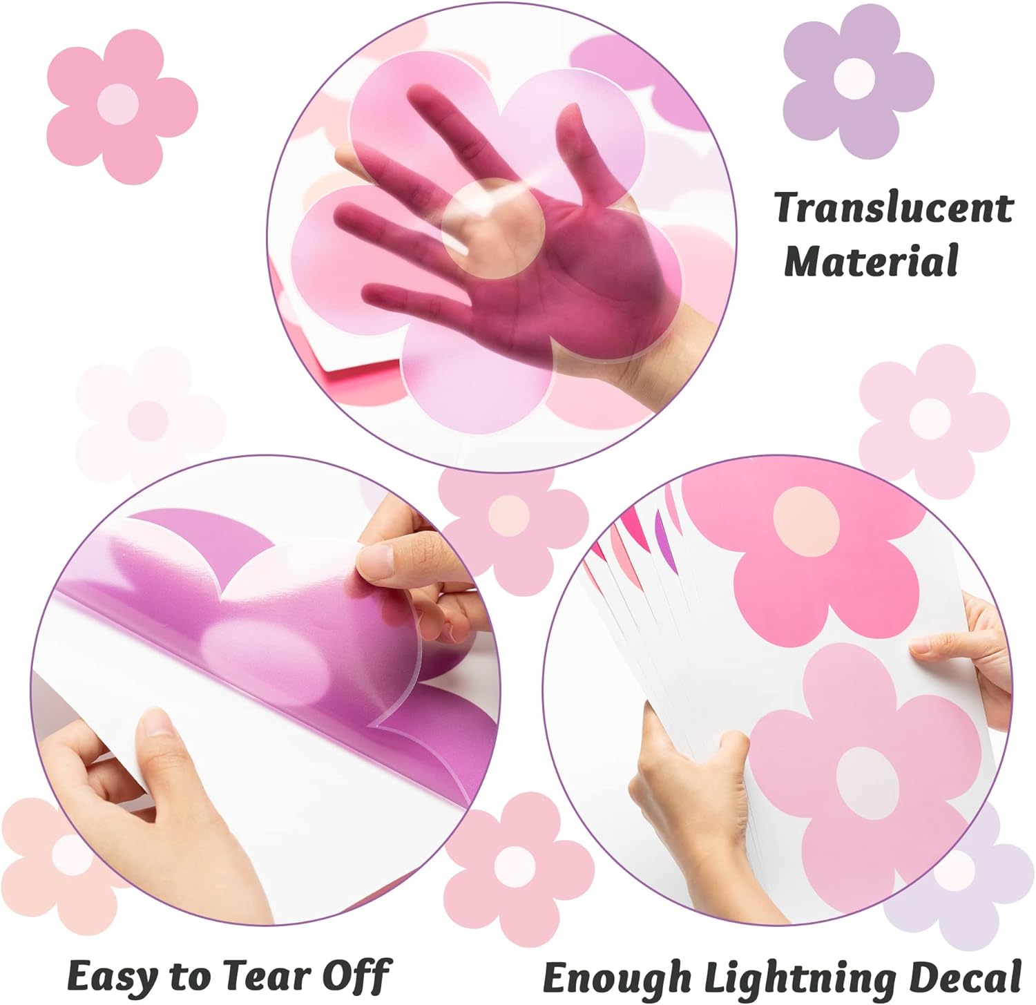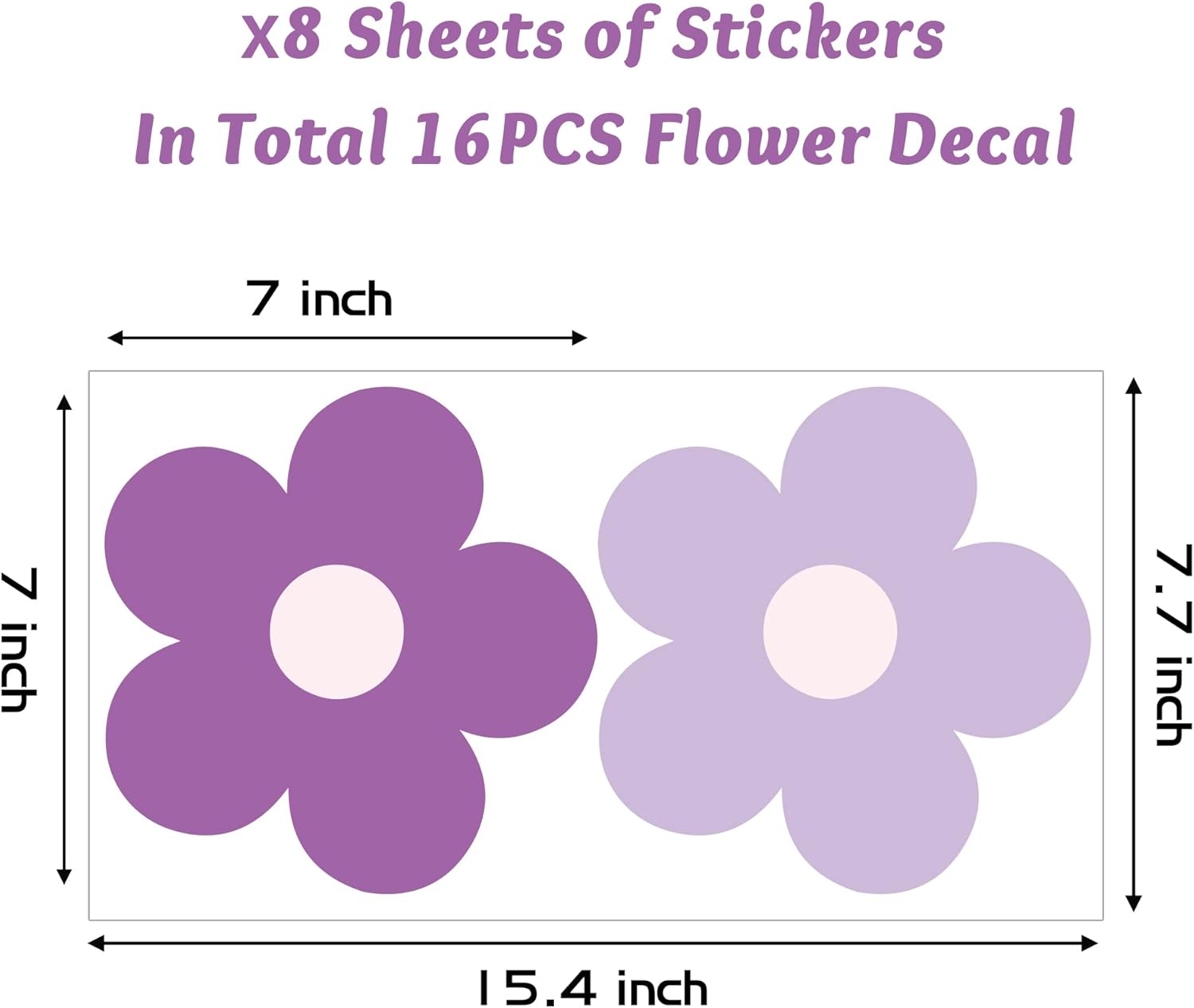 16-piece Y2K pink and purple flower wall decal set with anti-glare matte finish and durable materials. Ideal for dorms, bedrooms, and living rooms. Easy to apply and remove, adding vibrant decor without damaging walls.