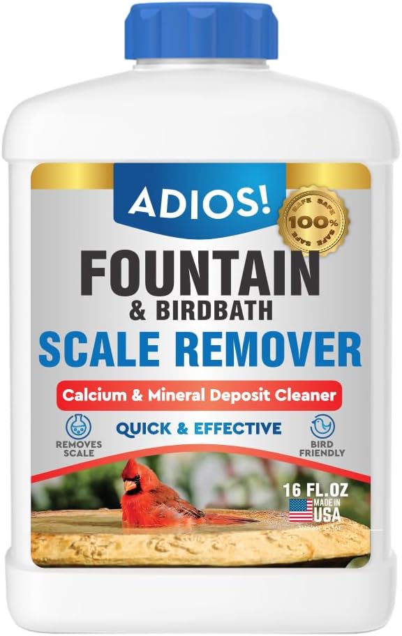 Unlike harsh chemical cleaners, ADIOS! uses a gentle yet powerful formula to remove and prevent scale buildup. This ensures that your fountain remains both safe and aesthetically pleasing, making it the ideal choice for dedicated bird fountain owners and water feature enthusiasts. Enjoy hassle-free maintenance with a product that delivers long-lasting results.