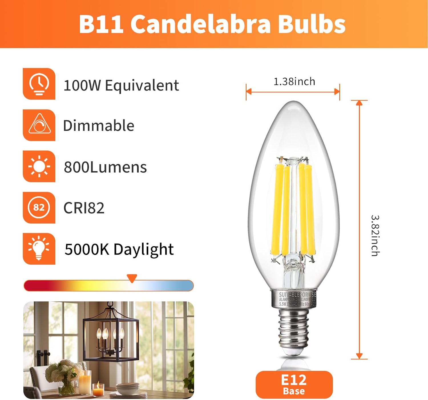 The 5000K daylight white color temperature provides a bright and natural light that enhances your home decor and makes your space feel more welcoming. Whether you're lighting a bedroom, living room, cafe, retail store, or any other commercial area, these bulbs are designed to blend seamlessly while delivering a crisp and vibrant glow. With CRI80+ color rendering, you can be sure that colors appear true to life, making it an ideal choice for spaces where visual clarity and detail matter.
