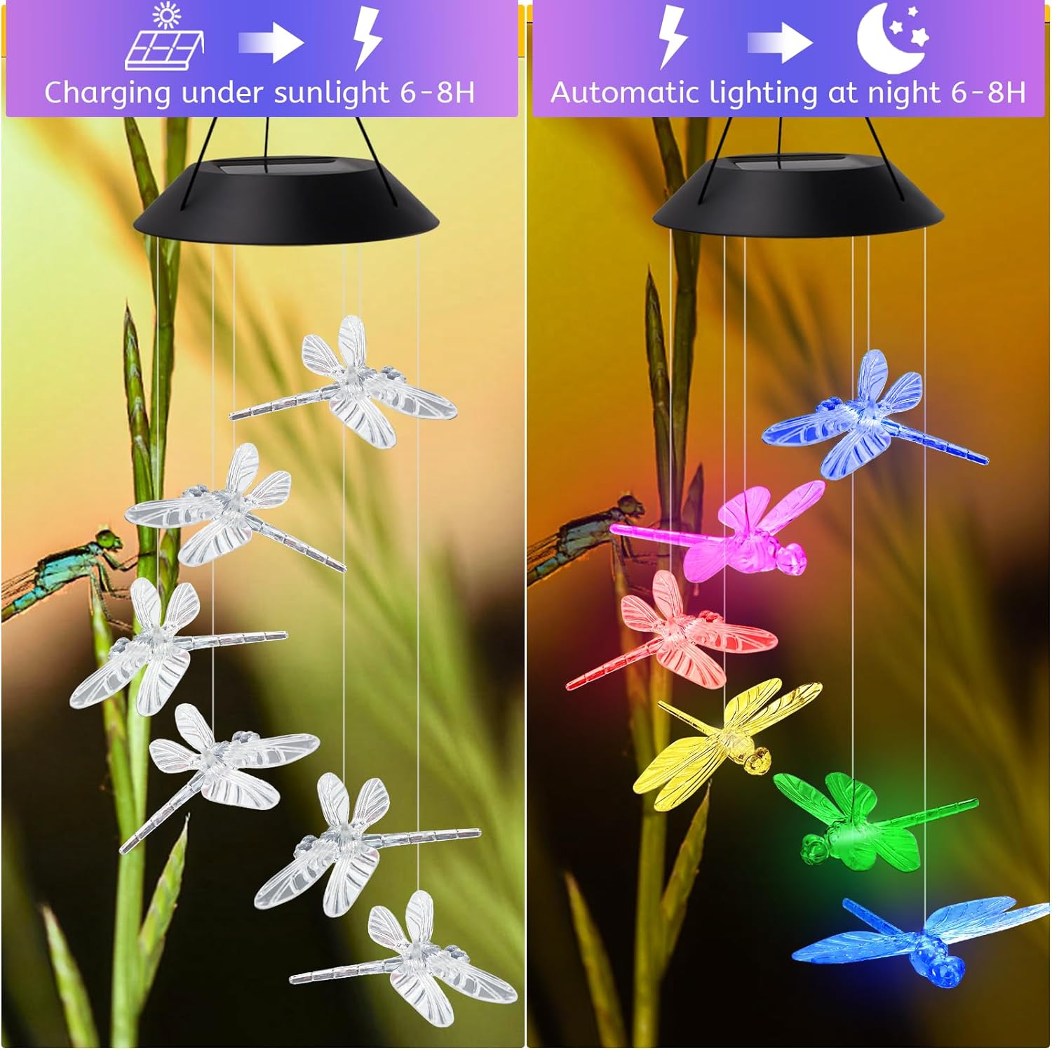 Solar Wind Chimes Outdoor: Ideal for any outdoor setting, these chimes are designed for natural and artistic beauty. Color Changing LED Wind Chimes: Adorn your space with dazzling displays that shift colors through the night. Dragonfly Solar Powered Chimes: A unique design that creates a peaceful ambiance while catching the sunlight to power its glow.