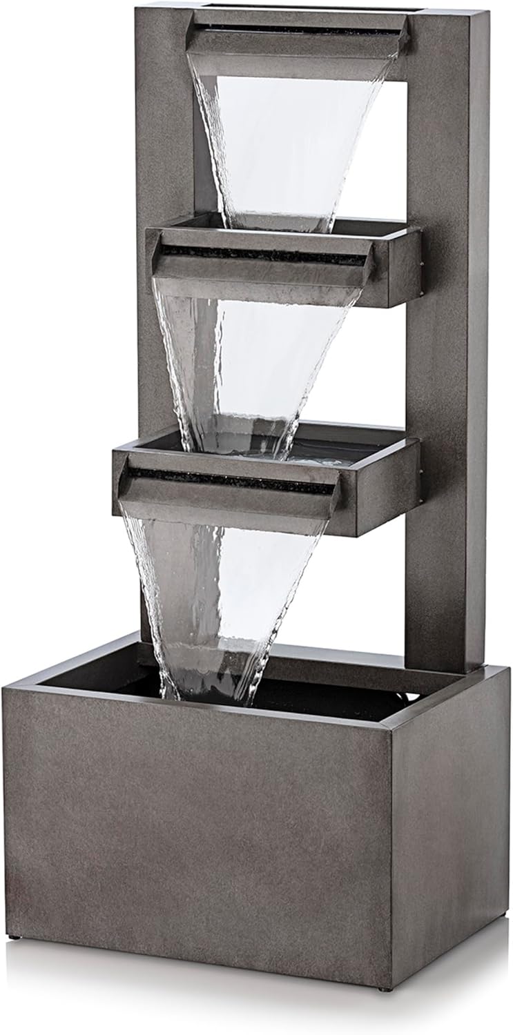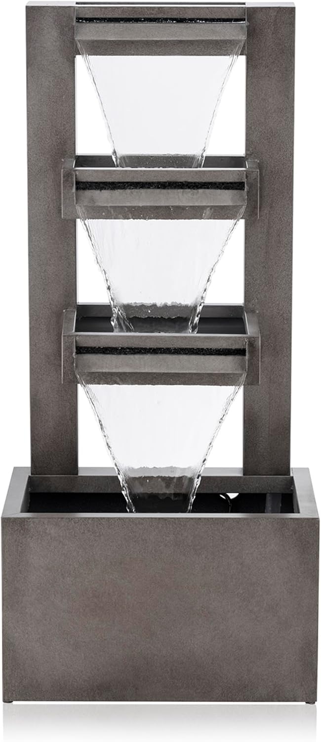 Elevate the beauty and serenity of your outdoor area with Alpine's CPS182 Gray Multitiered Floor Fountain. This stunning piece blends modern design with nature's calming presence, creating an eye-catching focal point in your garden or patio.