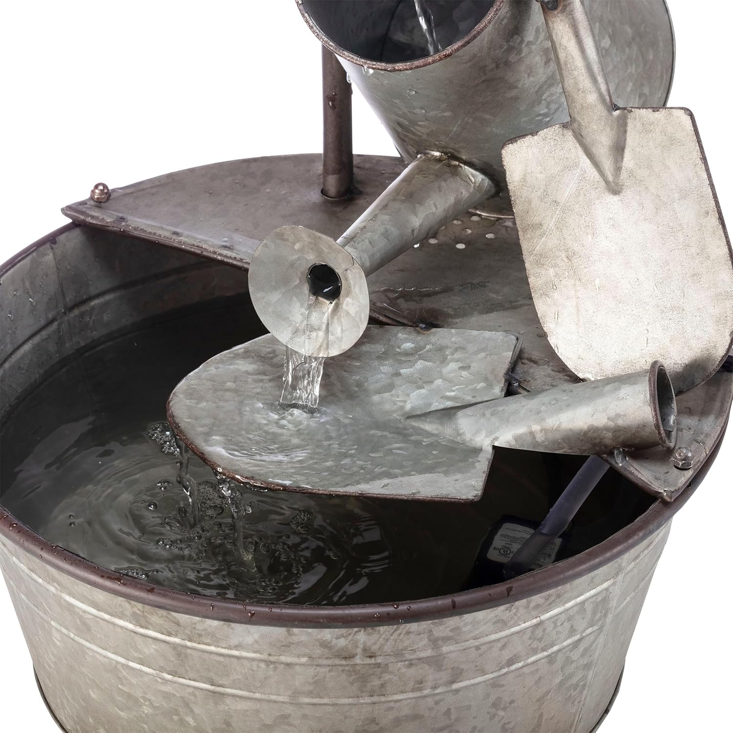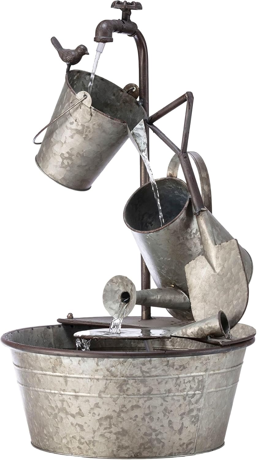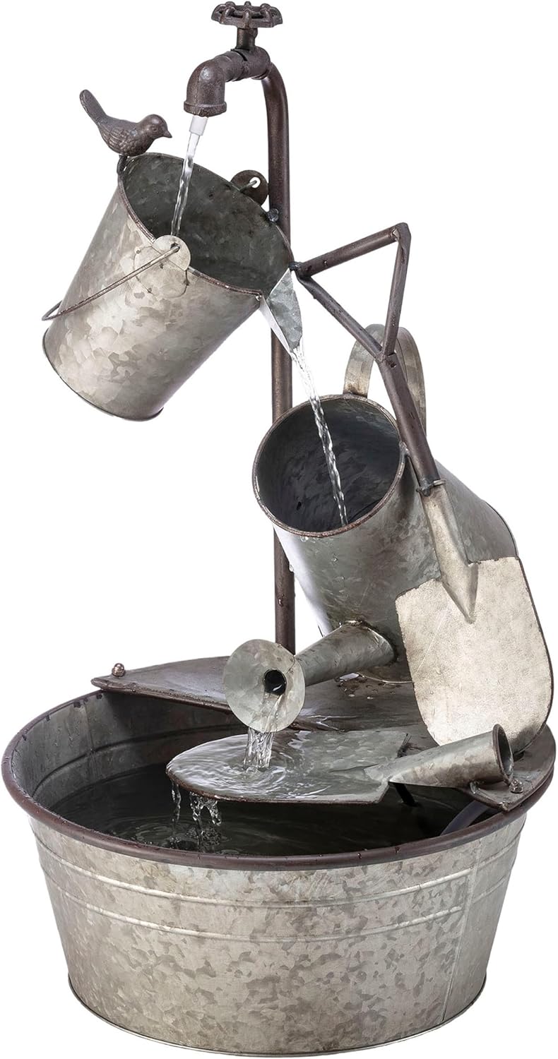 Create a relaxing atmosphere with the soothing sound of flowing water, enhanced by the rustic details of the garden tools design. This fountain serves as a conversation starter and a peaceful focal point, adding visual interest and a touch of nature to your living space. It's a versatile choice for those who want an outdoor decor fountain that doubles as a functional water feature, making it a great addition to patios, decks, or garden areas.