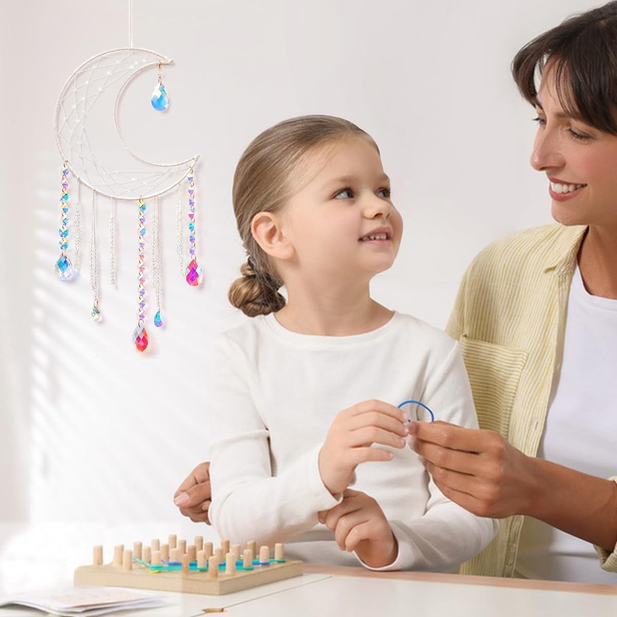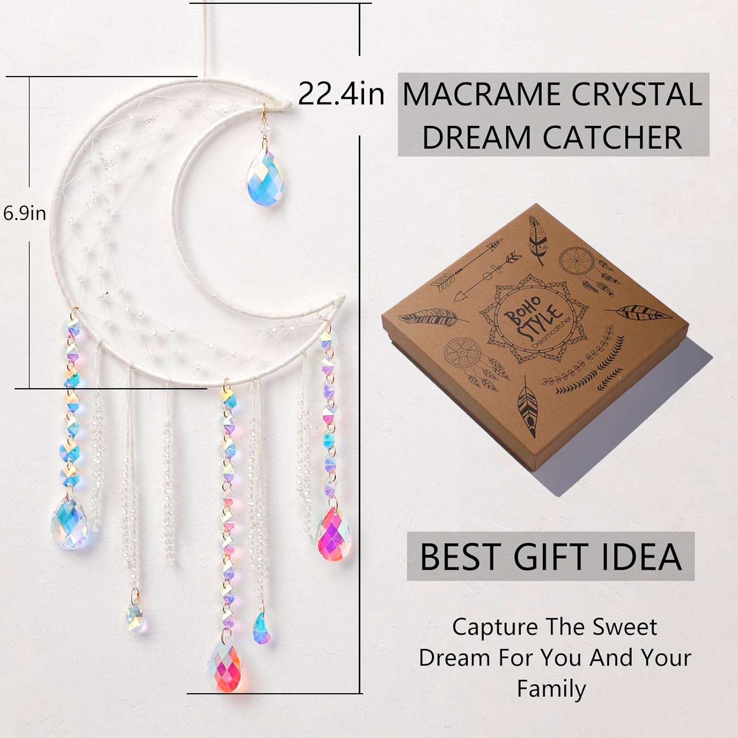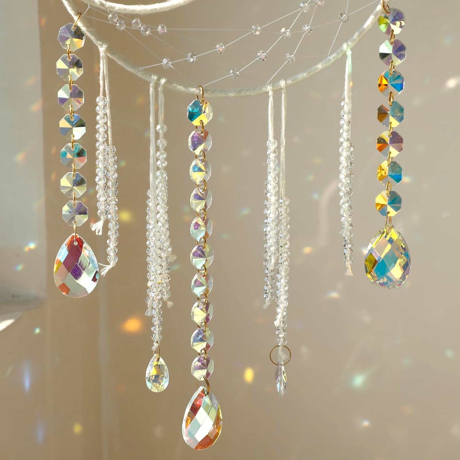 Enhance your living space with this unique blend of tradition and modern style. The Artilady Crystal Dream Catcher is a beautiful, handmade wall decor that combines intricate macrame with sparkling crystals and glass beads. Its elegant design is perfect for adding a magical touch to your bedroom, nursery, or any room in your home.