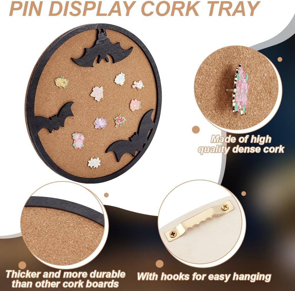 Elevate your space with this elegant and practical cork board display featuring a charming bat design. It's the ideal solution for showcasing your favorite brooches, pins, and accessories in an organized, eye-catching way. Crafted from high-quality natural cork, this board combines durability with a soft, self-healing surface that keeps it looking fresh and intact for years to come.