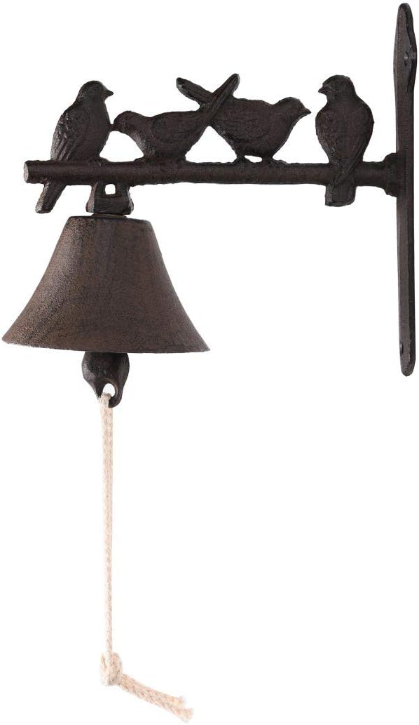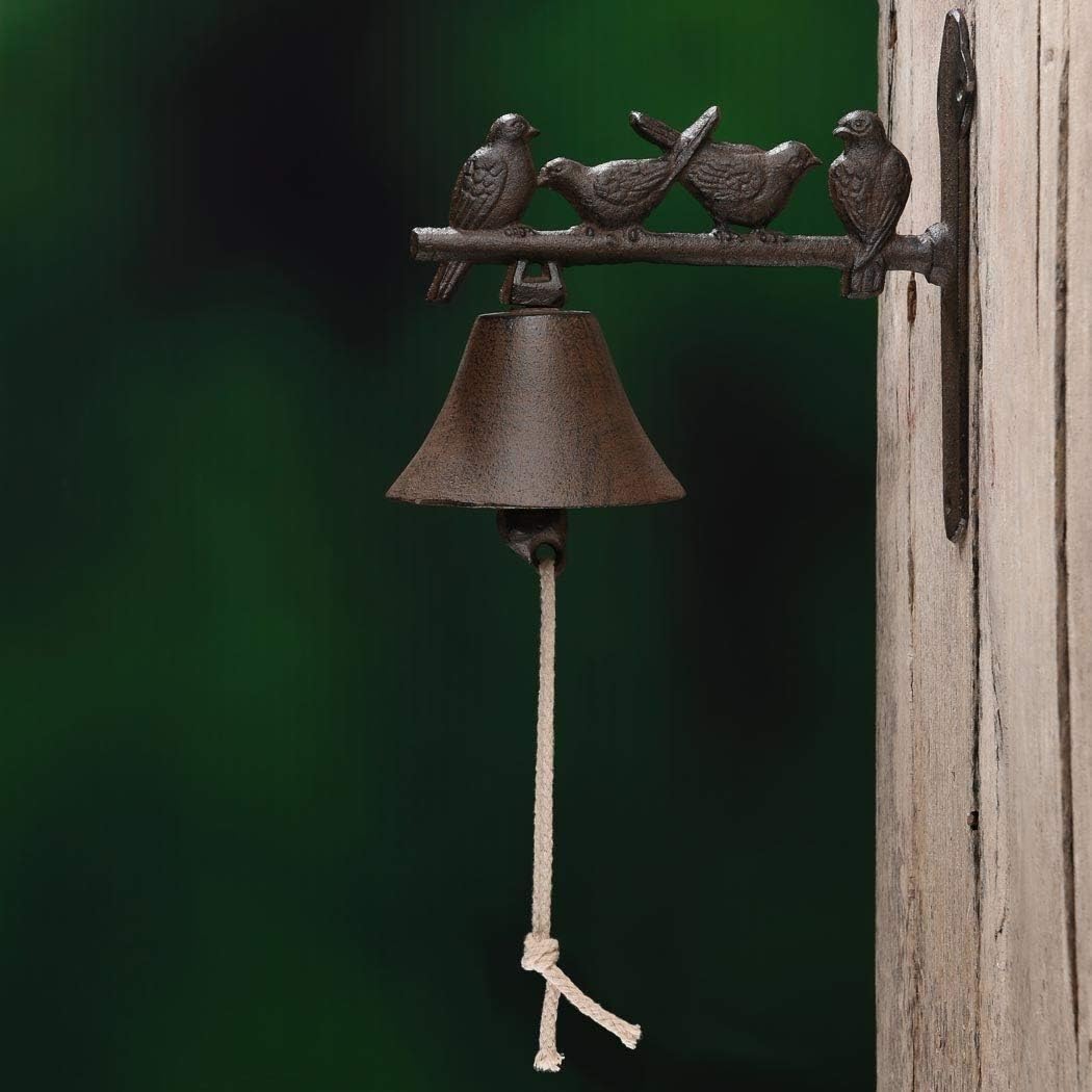 This vintage-inspired door bell is more than just a functional item; itâs a statement of style and character. Meticulously crafted from cast iron, its design brings a touch of timeless beauty to your front door. The four little birds perched on an ornate branch post add a whimsical, artistic flourish that complements any traditional or rustic home.