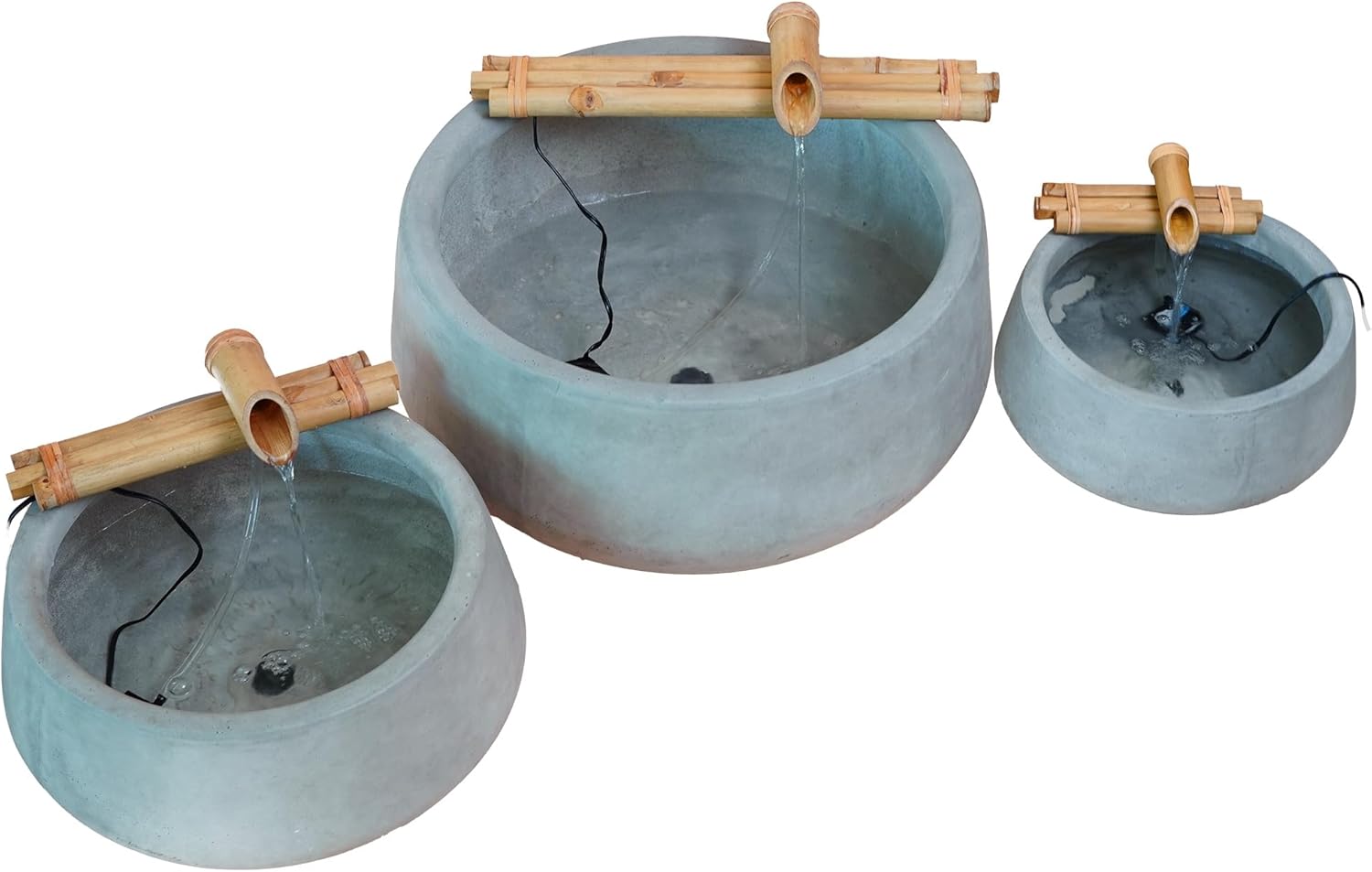 This beautifully crafted three-arm fountain is ideal for use in large bowls, planters, or pots. With a handcrafted split-resistant bamboo spout, it offers both durability and an elegant, organic look that blends seamlessly with any interior or exterior style. The included silent pump ensures a soothing waterfall sound that enhances relaxation without disturbance.
