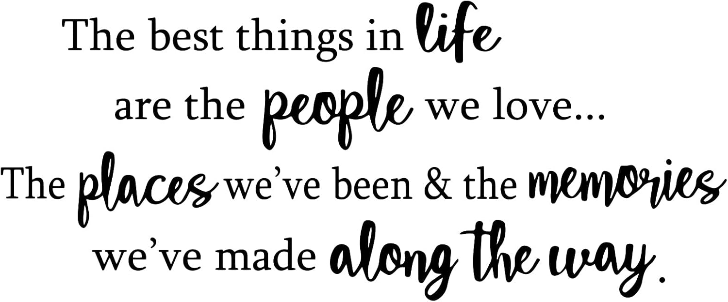 This eye-catching wall decal is more than just decorâit's a celebration of lifeâs most cherished moments. With the powerful quote "The Best Things in Life are The People We Love, The Places We've Been, and The Memories" in bold black vinyl, it adds a meaningful and artistic statement to any room. The matte finish gives it a sleek, sophisticated appearance, while its removable design allows you to easily take it down without leaving any residue behind. Perfect for renters, home decorators, or anyone who loves to refresh their space with new ideas.
