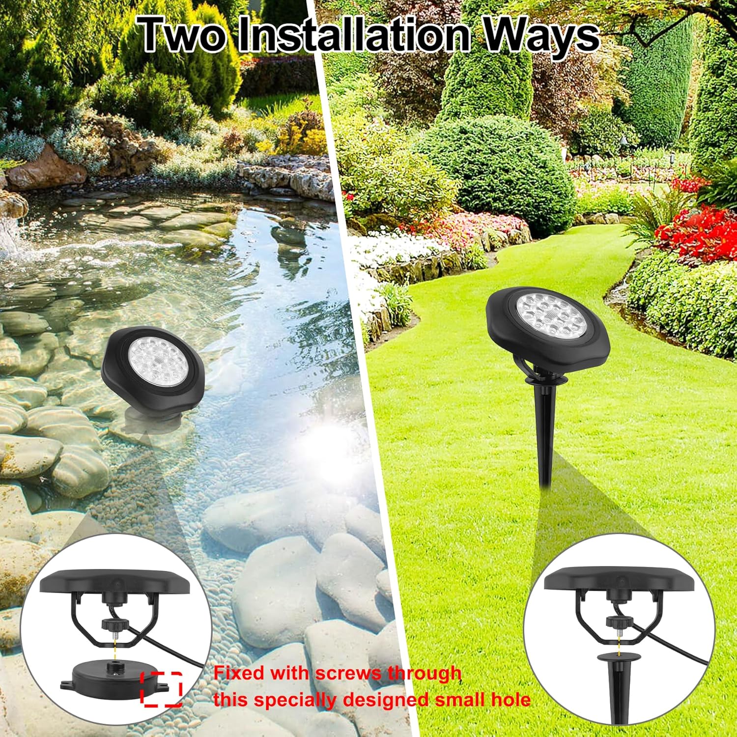 Whether you're aiming to illuminate a pond, enhance your garden's beauty, or brighten your backyard pool, these lights offer a seamless and modern solution. The included remote control makes it easy to change colors, adjust brightness, and control lighting effects from a distance. Plus, the optional installation flexibility allows you to place them either underwater or on the ground, wall, or landscape for a cohesive look.