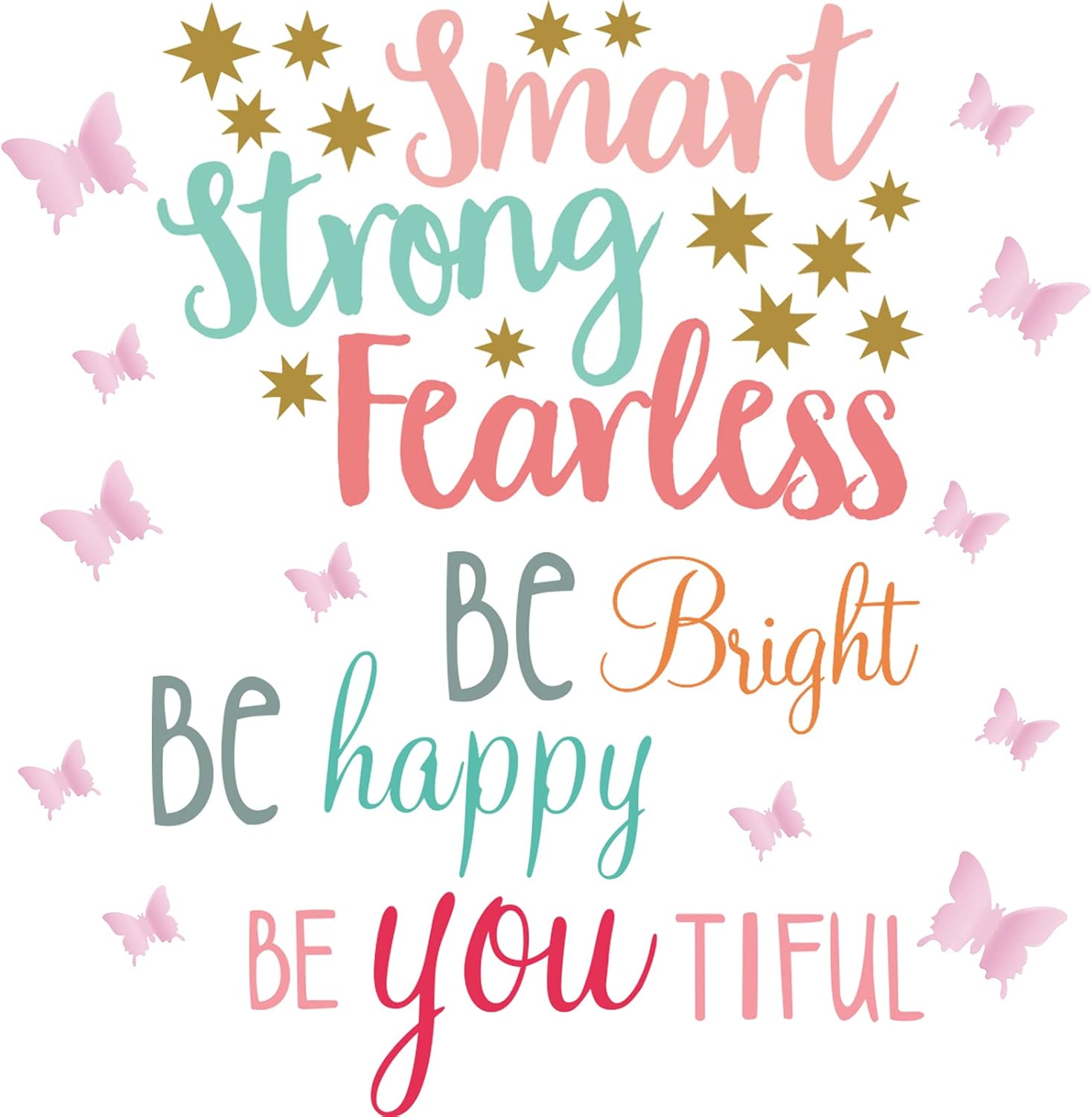 These handpicked 20 vibrant inspirational quote wall decals are designed to bring joy, motivation, and positivity to your room. Featuring catchy phrases like âBe Bright Happyâ and âBe You Tiful,â they add a warm, artistic touch to any environment, from home to office.