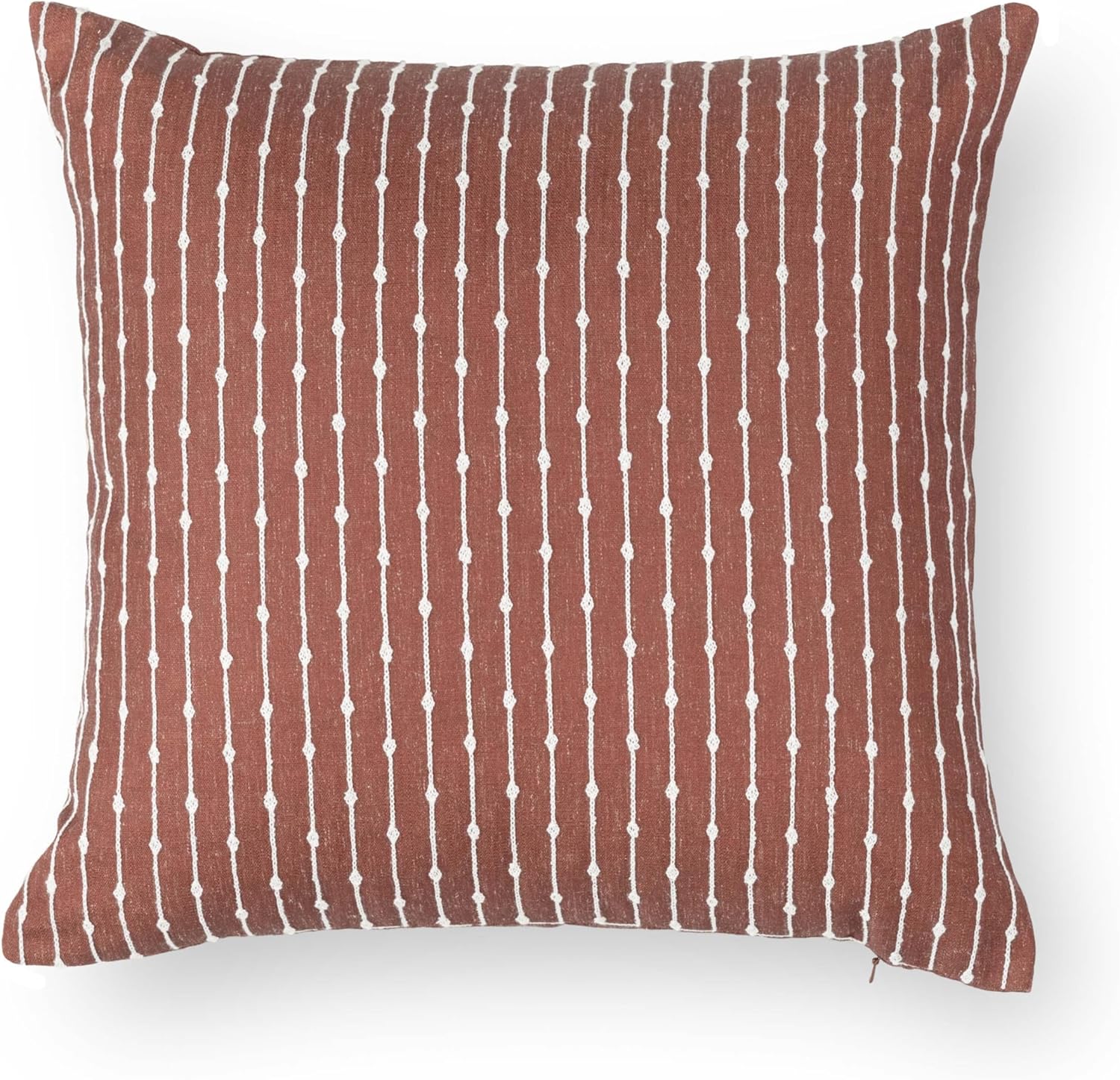 This throw pillow cover effortlessly blends timeless elegance with modern design. Its neutral white vertical embroidery lines create a striking contrast against the rich rust background, adding depth and sophistication to any room. Whether you're furnishing your living room or enhancing your outdoor patio, this piece is built to complement both settings with its versatile appeal.