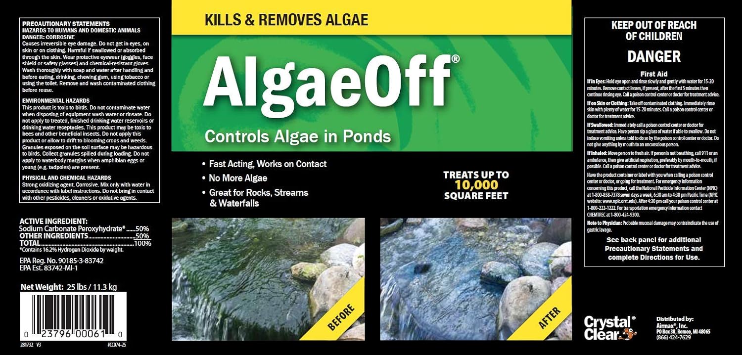 CrystalClear AlgaeOff is a powerful and safe algaecide designed to control and eliminate string algae in ponds, water gardens, and outdoor water features. Using advanced oxygen technology, it safely and effectively targets stubborn algae growth in hard-to-reach areas like rocks, waterfalls, and stream beds. This EPA registered product not only removes algae mats but also helps eliminate unpleasant odors and green stains, leaving your water garden looking and feeling fresh.