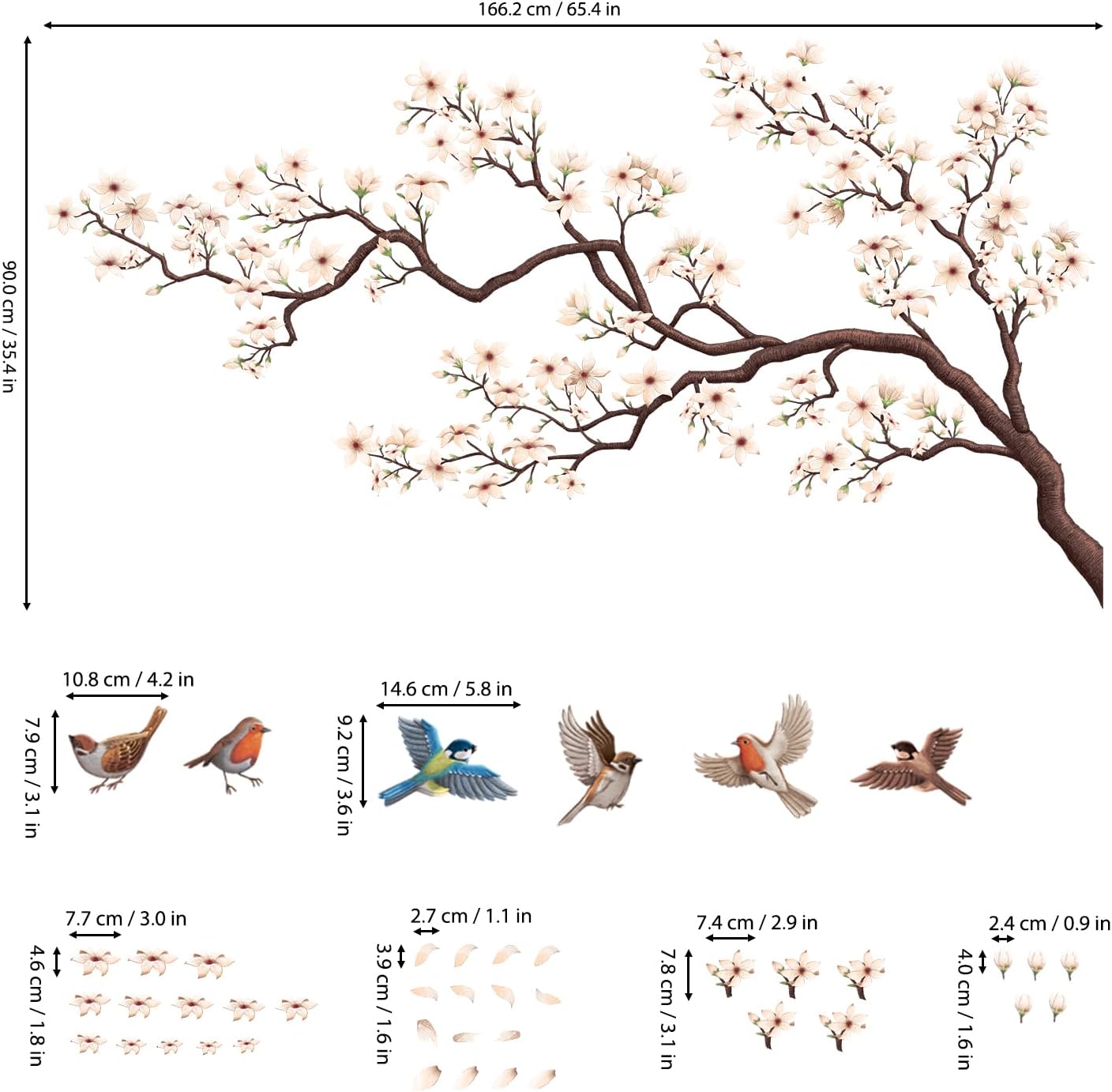 Bring the beauty of nature into your home with these eye-catching wall stickers. Featuring a breathtaking cherry blossom tree adorned with birds and delicate branches, this design adds a touch of elegance and charm to any room. Perfect for parents and decorators alike, these stickers are easy to apply and remove, allowing for a stress-free way to refresh your space.