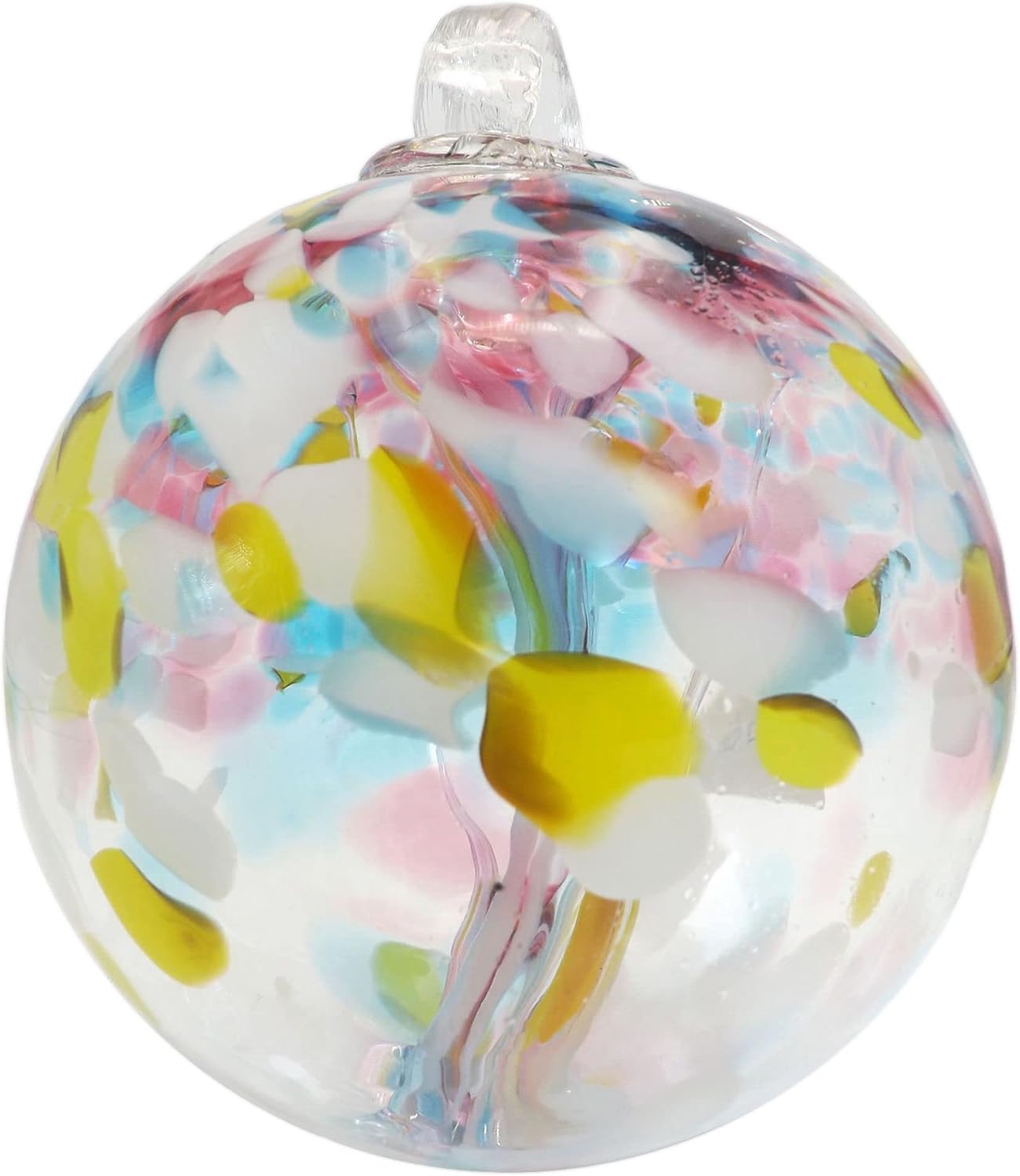 This exquisite Dale Tiffany glass gazing ball is a work of art that captures the beauty of nature and modern design. Crafted with exceptional care, its rich hues and hand-blown elegance reflect a unique blend of creativity and craftsmanship. At the heart of the glass lies a delicate tree trunk detail, making it a one-of-a-kind decorative element that adds charm and character to any space.