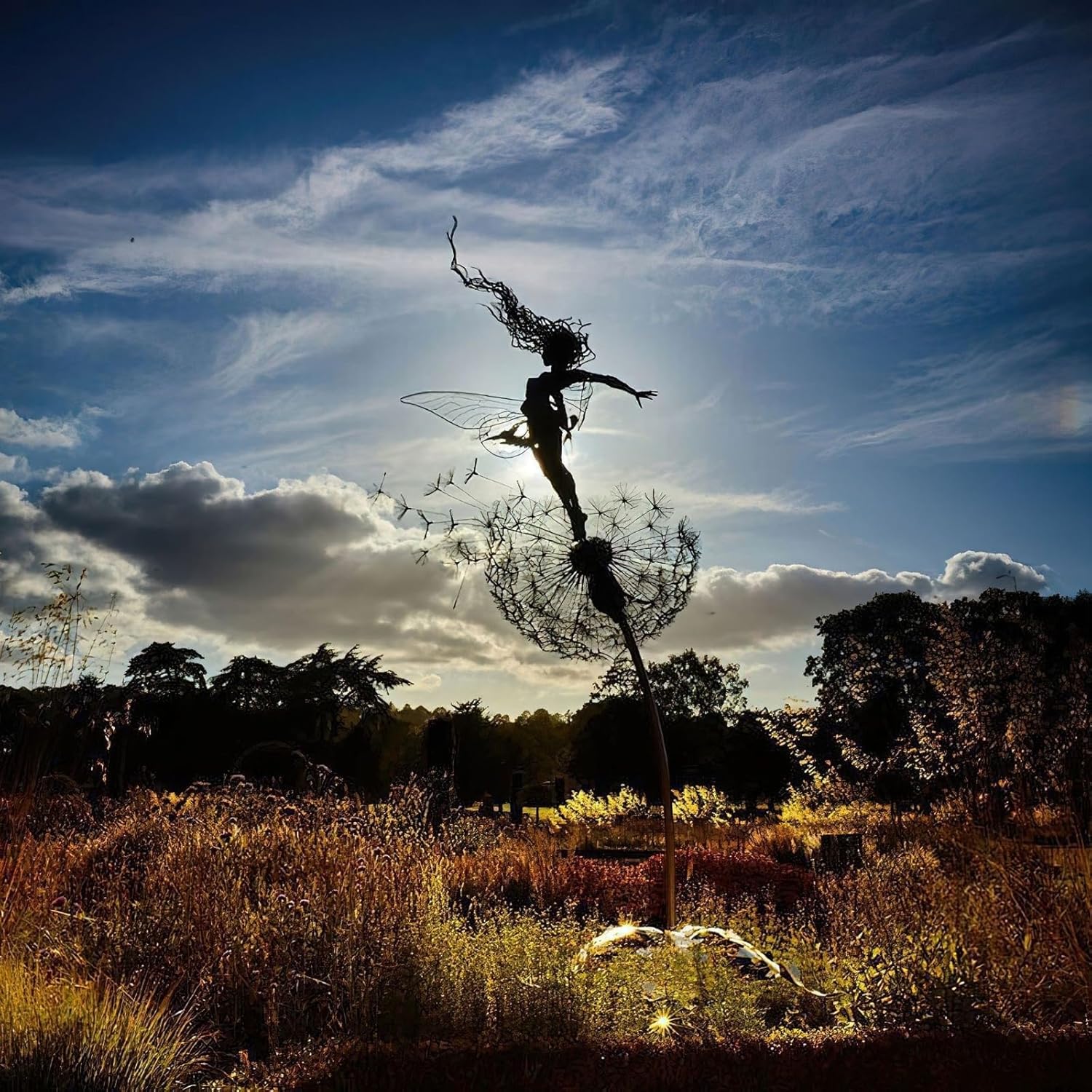 Transform your outdoor space into a magical paradise with the Dandelion Fairy Wind Sculpture Set of 4. Each fairy is crafted to move with elegance in the gentle breeze, adding a touch of whimsy and charm to your garden or patio. These sculptures blend beauty and durability, made from heavy-duty iron with an anti-rust coating to withstand the elements while retaining their serene glow.