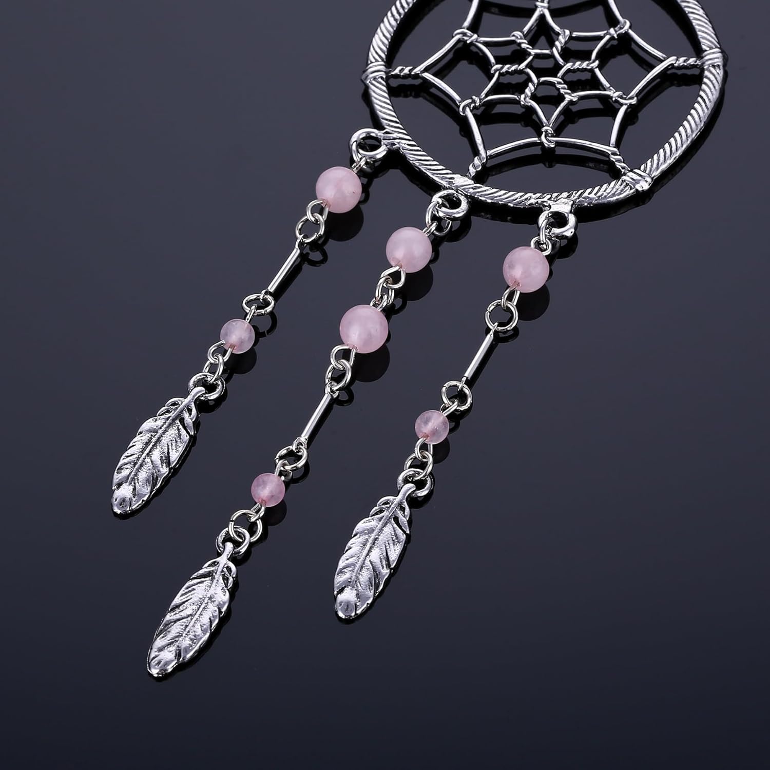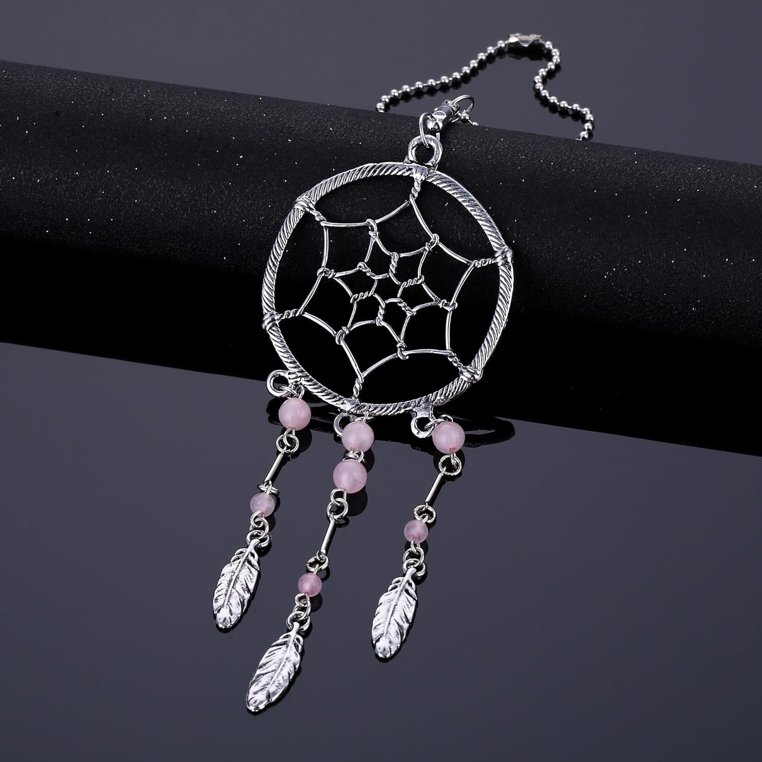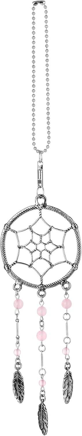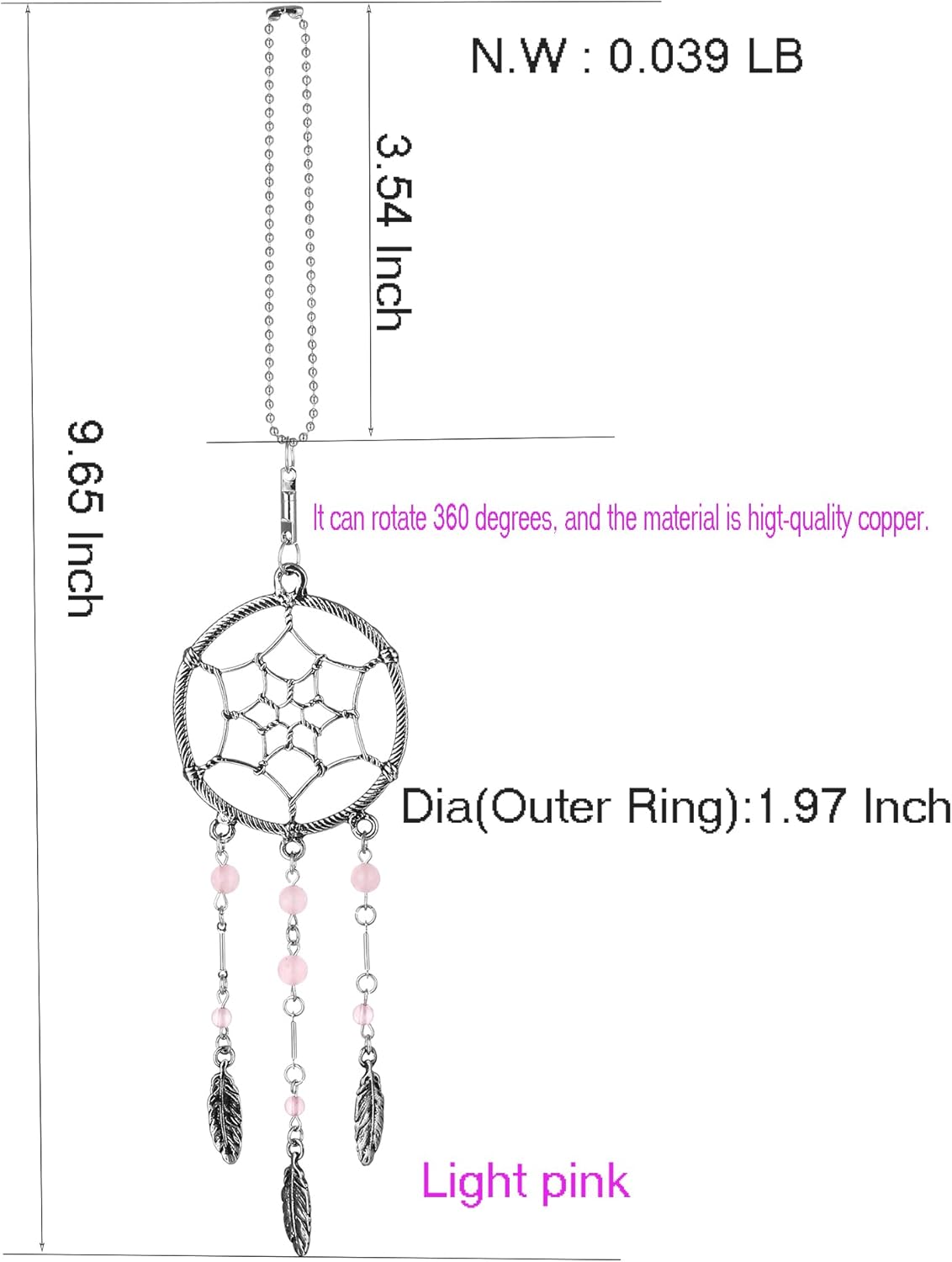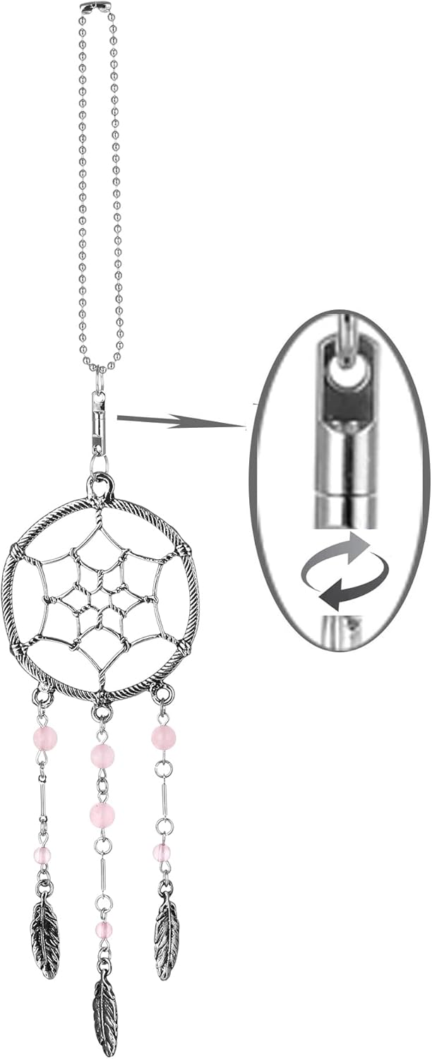 Adding a touch of charm and style to your car, office, or home, this dream catchers car charm is designed to complement any interior. Crafted with a delicate light pink bead, it pairs beautifully with the sleek silver-black plated frame, creating a unique and eye-catching display. The rotatable feature not only offers endless entertainment but also provides a calming visual effect, perfect for moments of relaxation while on the road or in your living space.