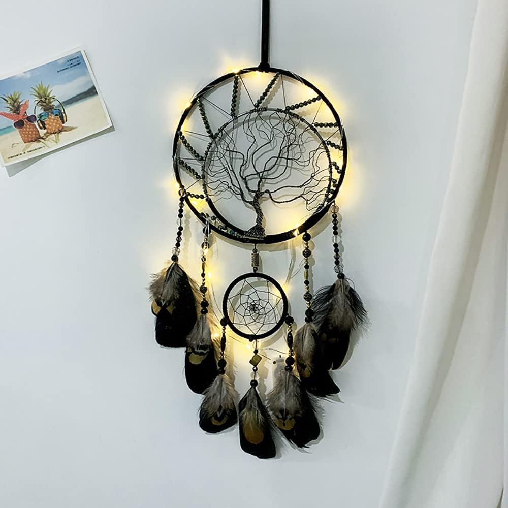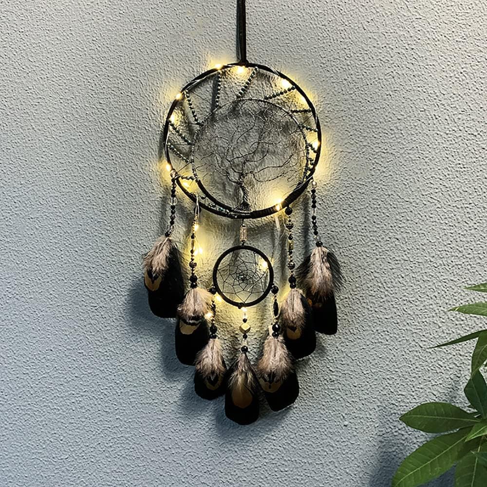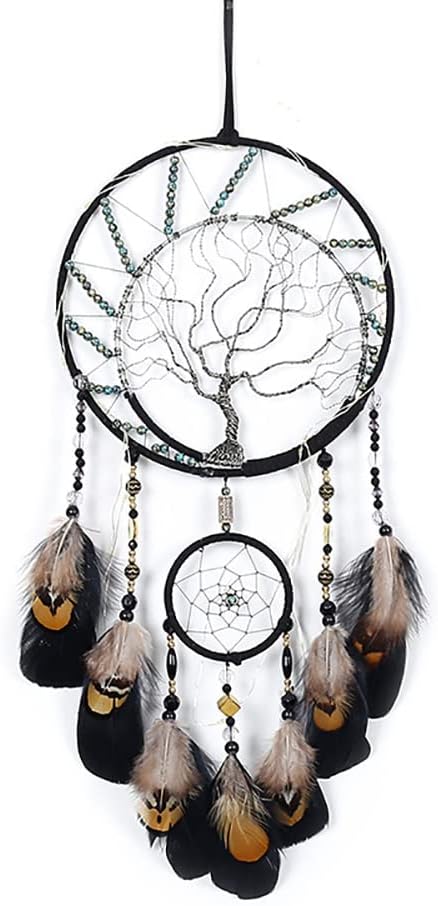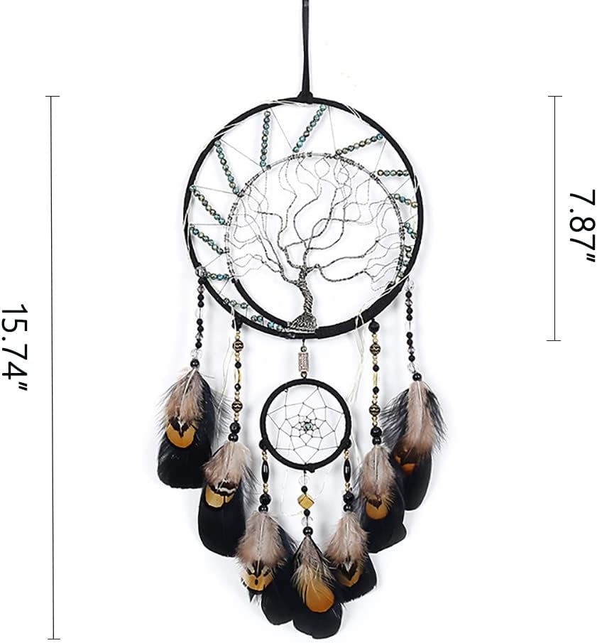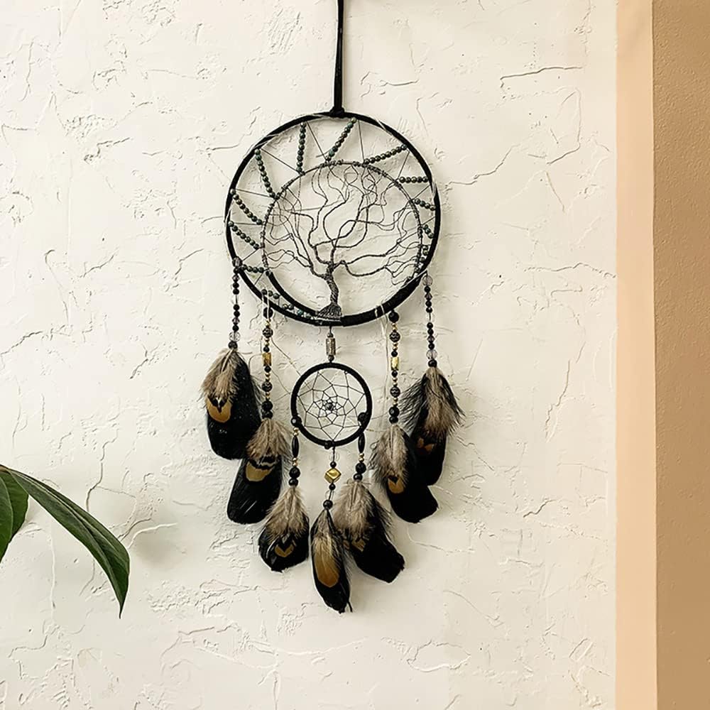 This dream catcher is more than just a decorative pieceâit's a meaningful symbol of protection, positivity, and spiritual connection. Featuring a black frame adorned with delicate feathers, crystals, and beads, it is carefully handwoven to reflect the beauty of the tree of life. According to tradition, it is designed to catch negative dreams while allowing good ones to pass through, helping you enjoy restful sleep and a sense of calm.