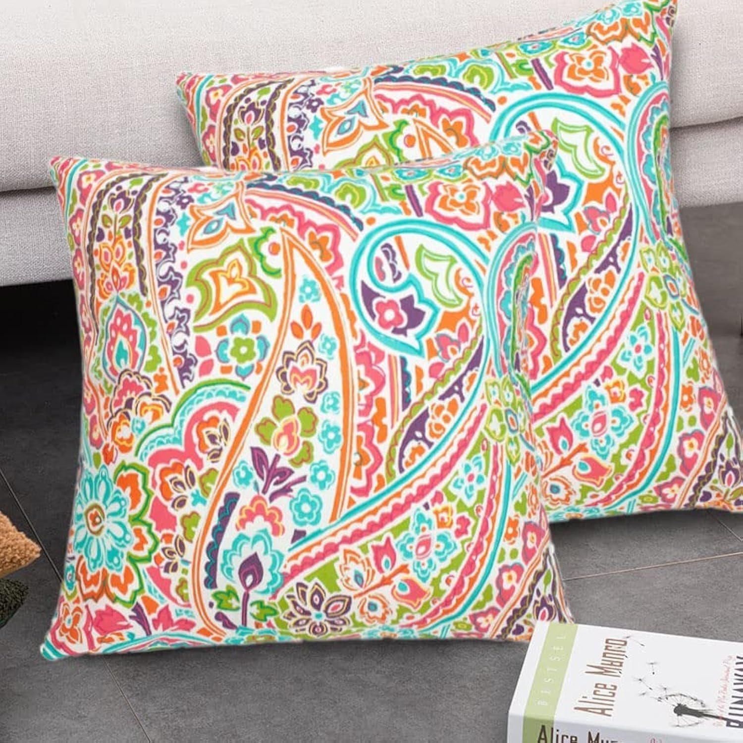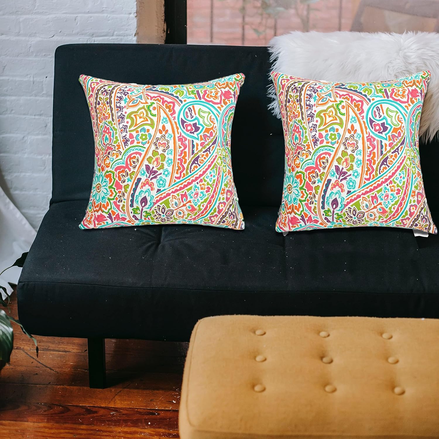These 18x18 inch throw pillow covers are designed to take your outdoor space to the next level. With a modern paisley pattern and an elegant, invisible zipper, they offer both style and practicality. Made from durable, water-repellent spun polyester, theyâre built to endure the elements while keeping their vibrant appearance. Perfect for patios, gardens, balconies, and more, these covers are ideal for those who want a fresh, decorative look without the hassle of frequent replacements.