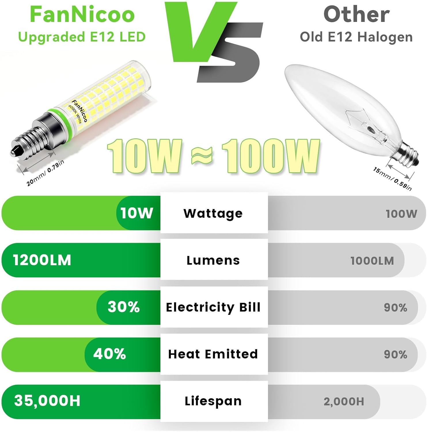 Upgrade your lighting with FanNicoo E12 LED bulbs designed for exceptional performance. With a remarkable lifespan of 35,000 hours, these bulbs ensure long-term reliability thanks to their advanced ceramic heat sink technology that keeps them cool and efficient during operation.