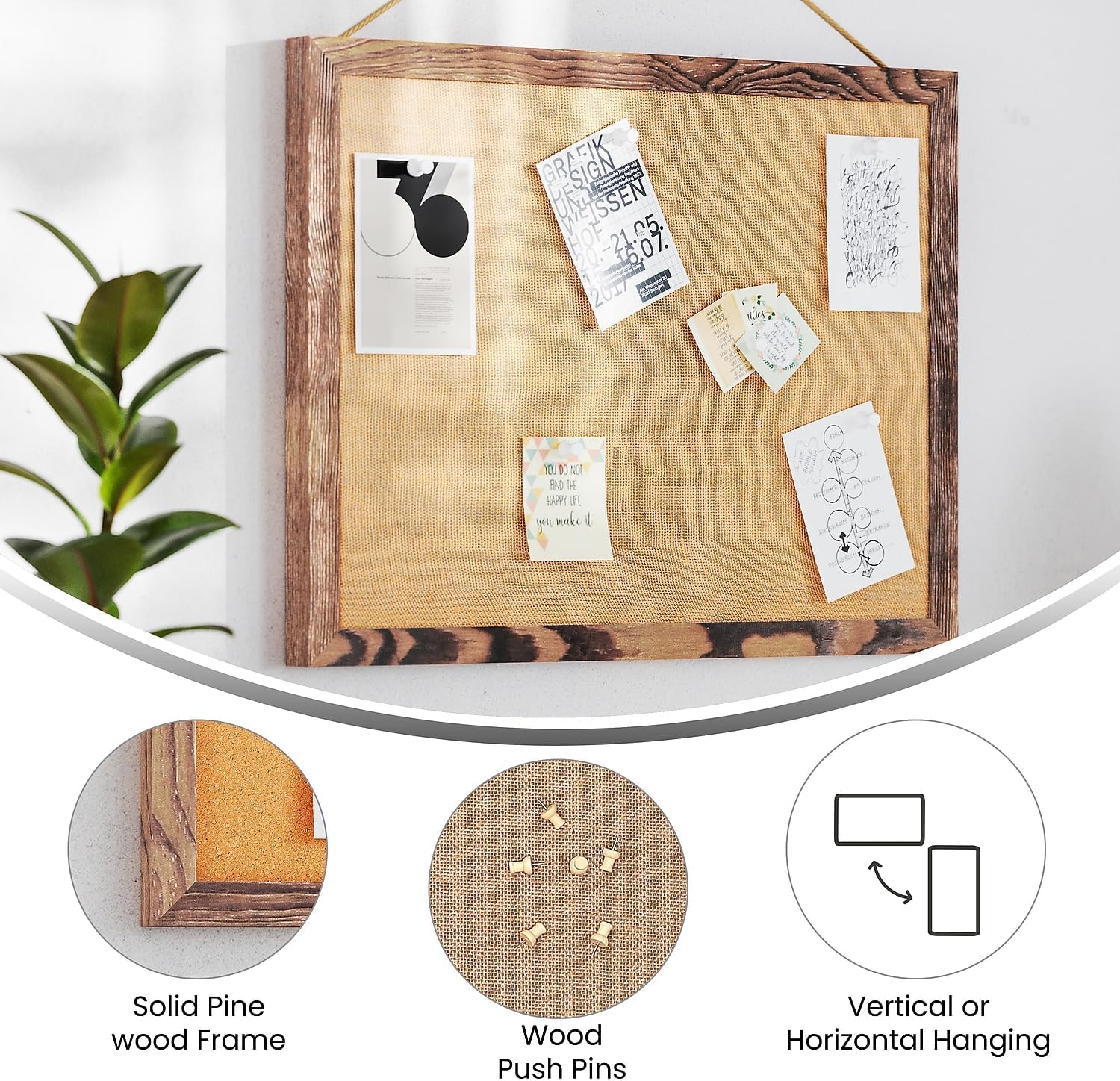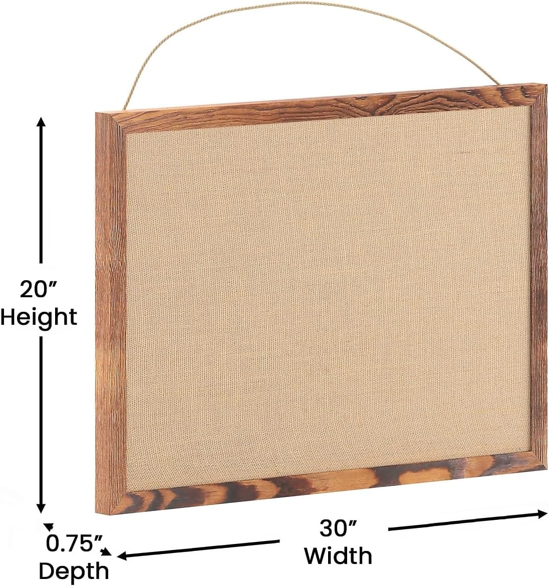 Flash Furniture Rustic Linen Memo Board is a versatile and durable wall-mounted board, ideal for home, office, and school. It features a torched brown wood frame and includes 6 wooden push pins for easy use and organization.