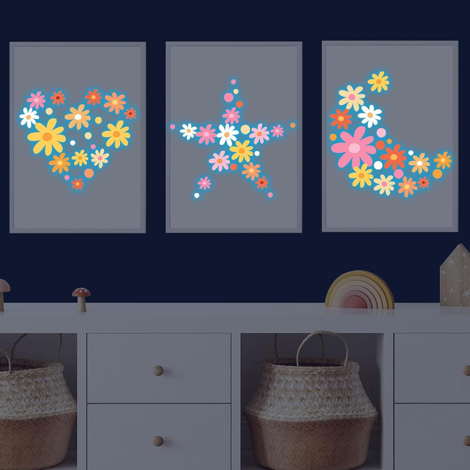 Glow in the dark daisy wall stickers bring a magical glow to any room. Safe, reusable, and easy to apply, perfect for girls' bedrooms and nurseries.