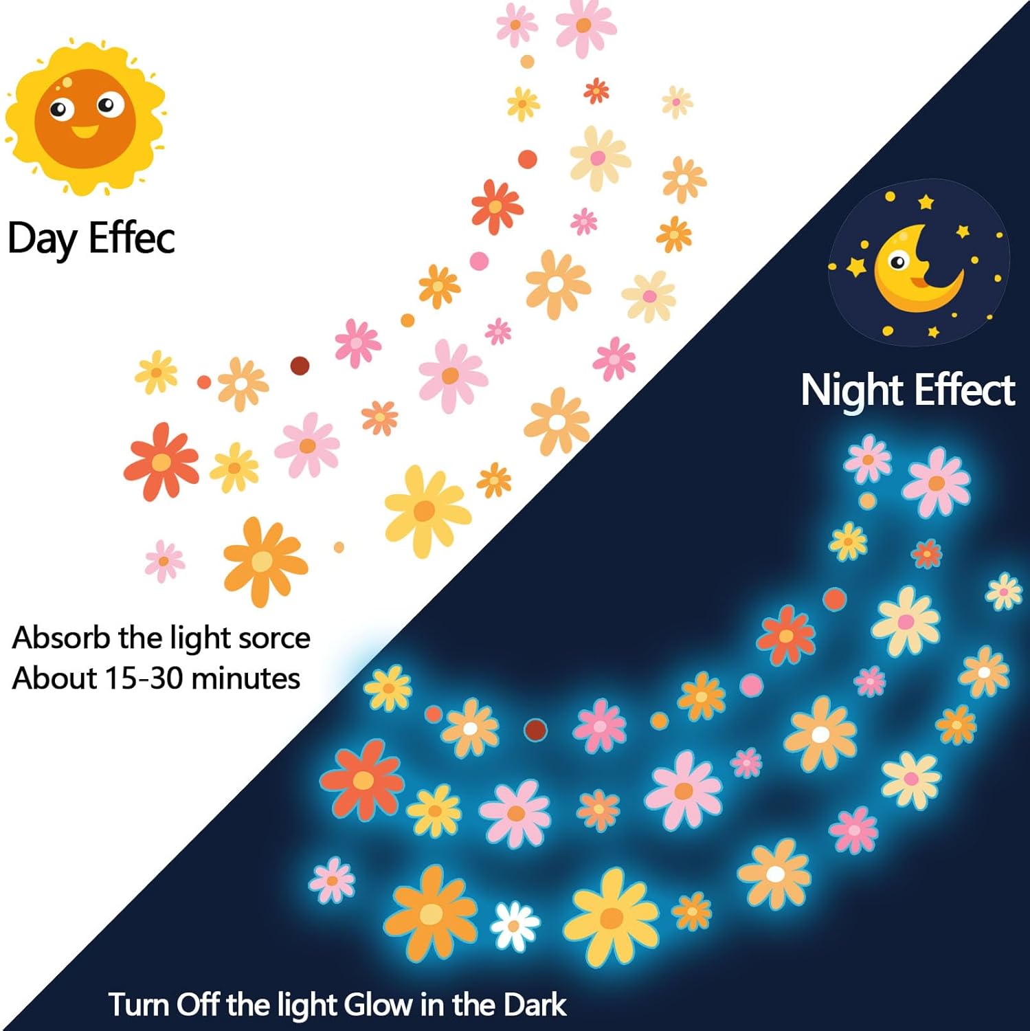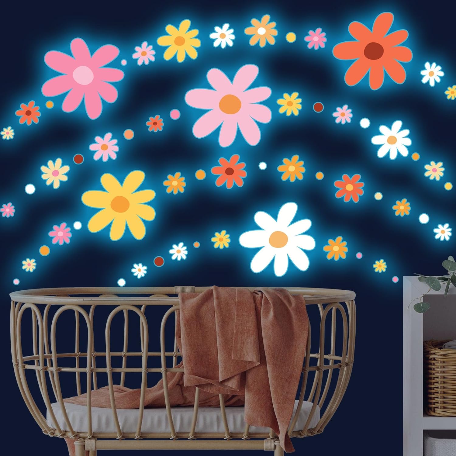 Glow in the Dark Daisy Wall Decals Set for Kids Room