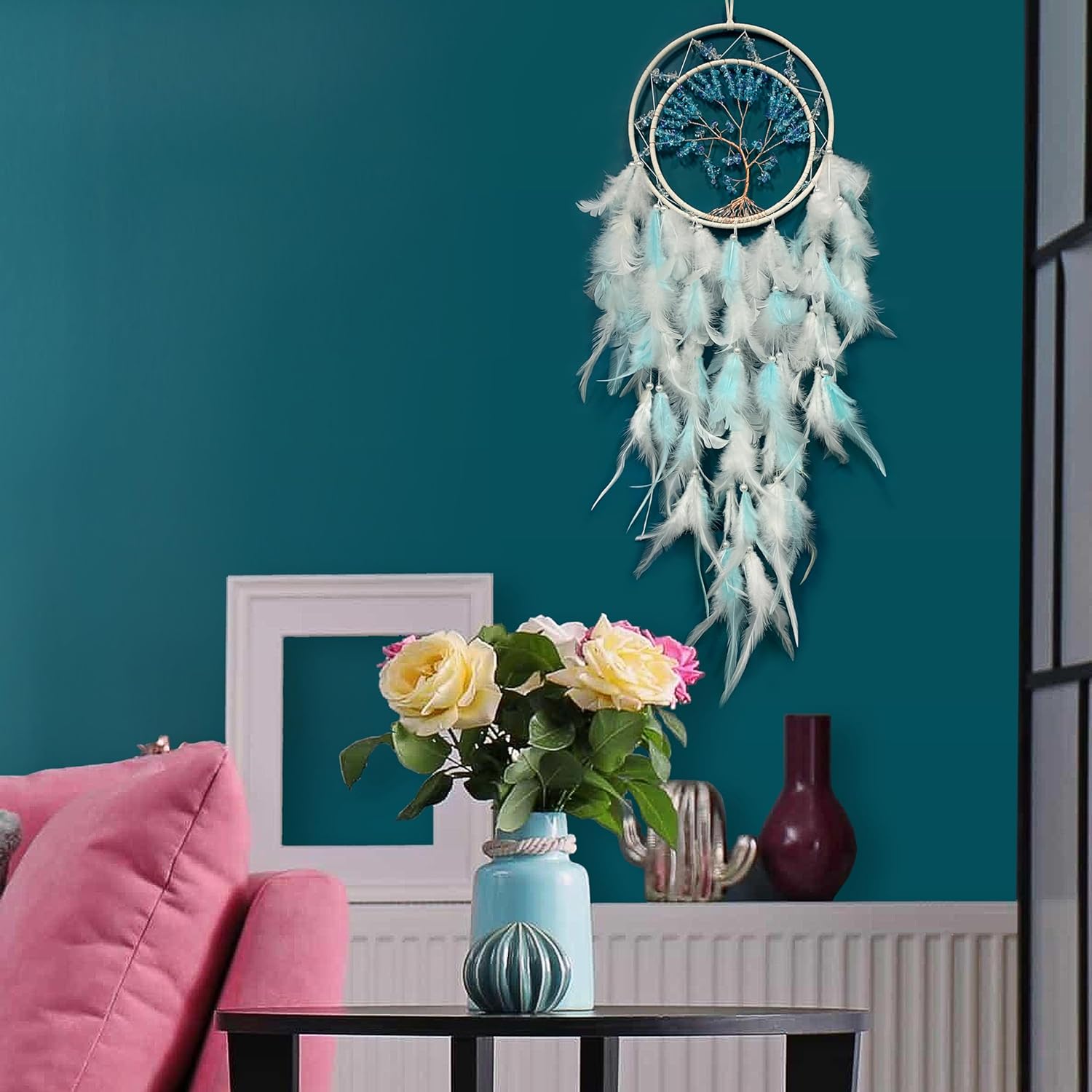 This handmade blue dream catcher is not just a decorative piece, but a meaningful symbol of good dreams and positivity. Handcrafted by skilled artisans, each design is unique and carries a timeless, vintage charm that adds elegance to any room. Whether you're looking to create a calming atmosphere or enhance your home decor, this dream catcher is a perfect blend of style and symbolism.