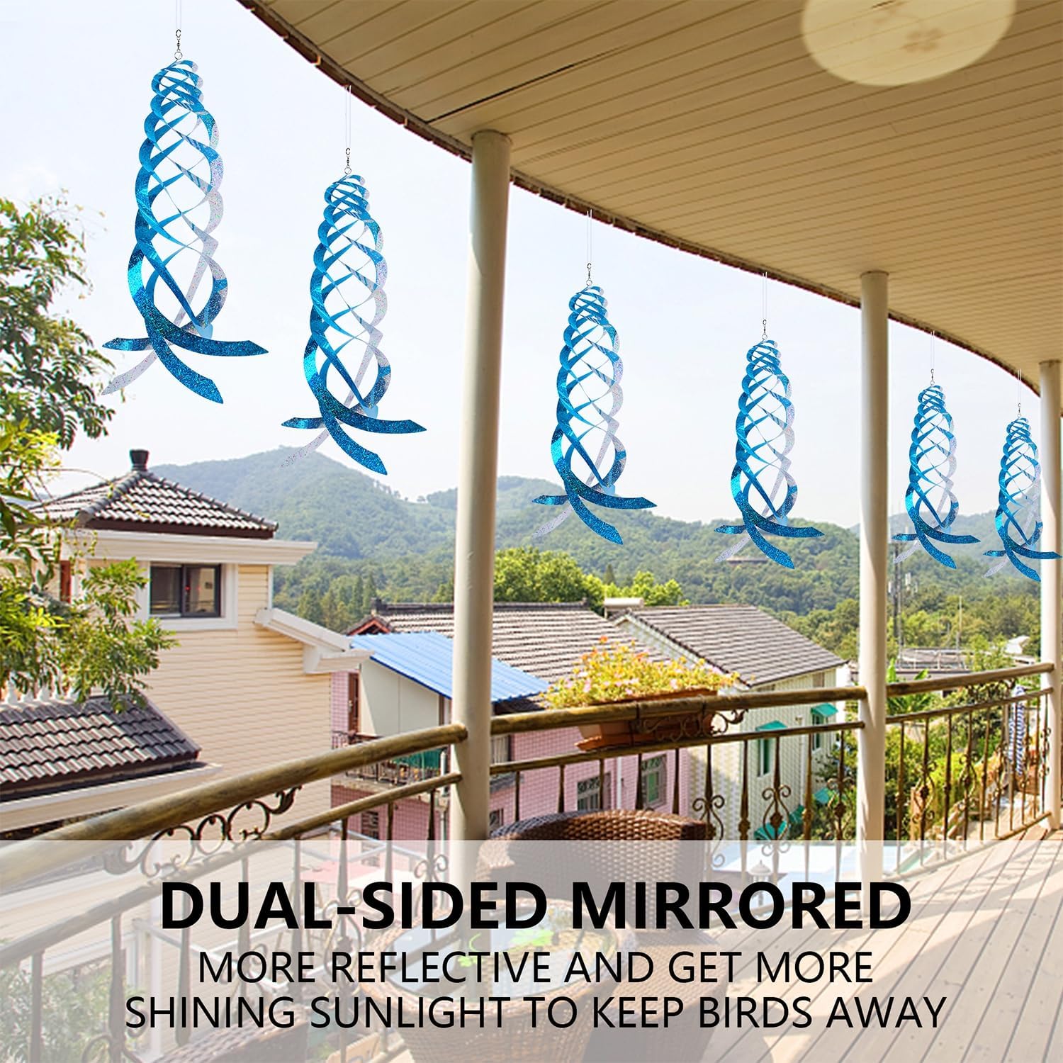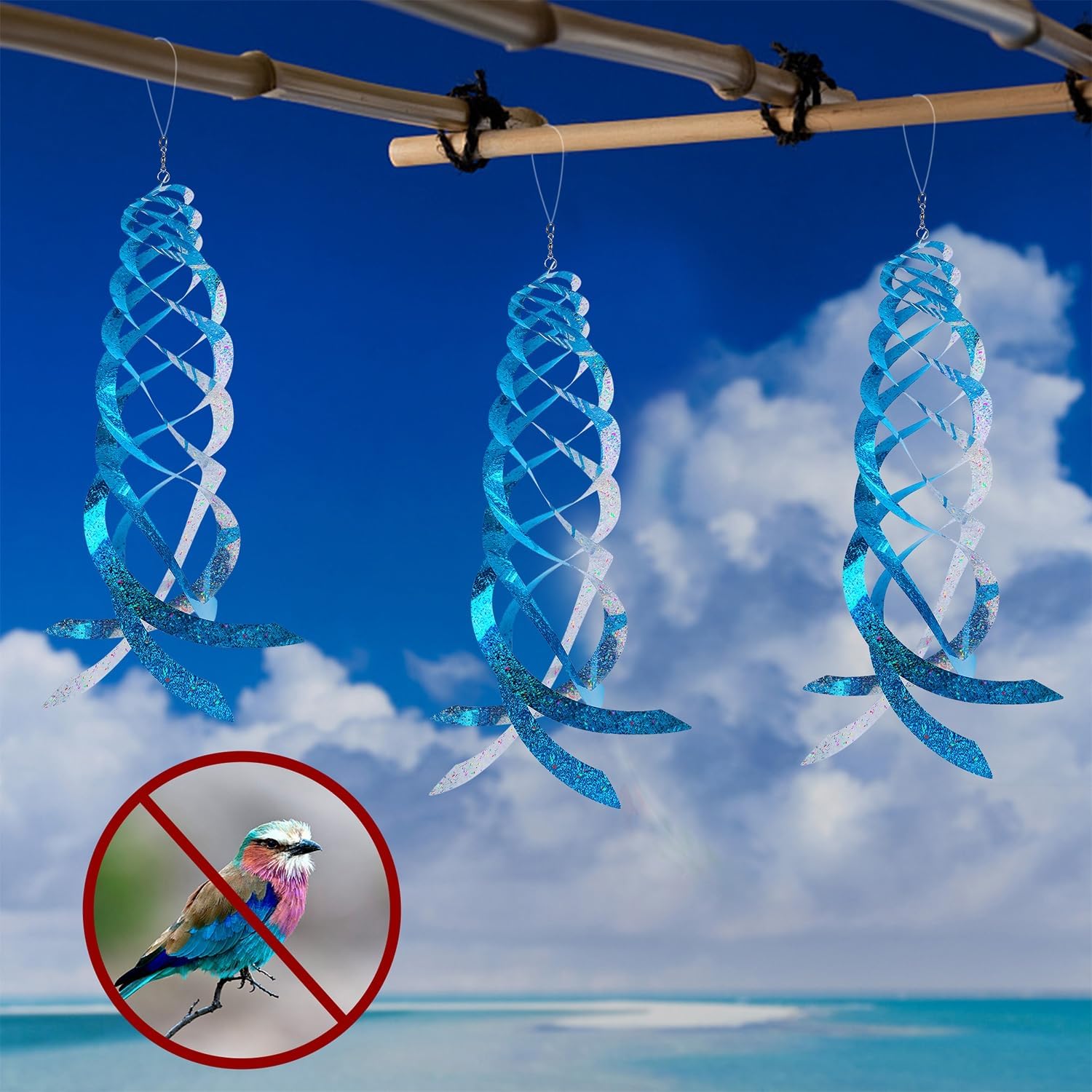 Designed to keep birds away while adding a touch of style to your garden or property, these wind-powered reflective bird deterrents are both practical and visually appealing. The innovative spiral shape is made from durable Blue Mylar, creating a shimmering effect that mimics movement and light, instantly deterring unwanted visitors like woodpeckers, pigeons, and geese.