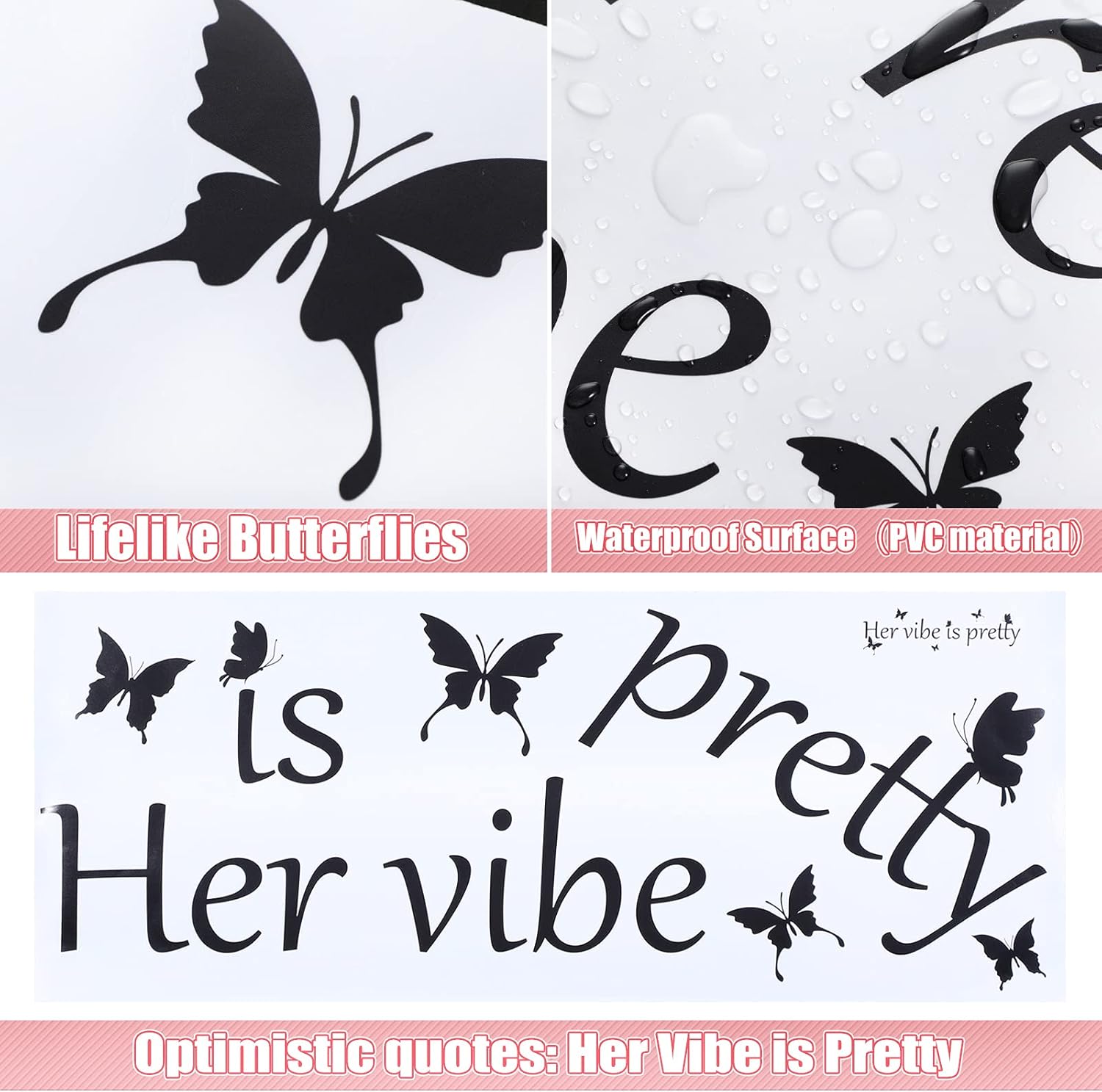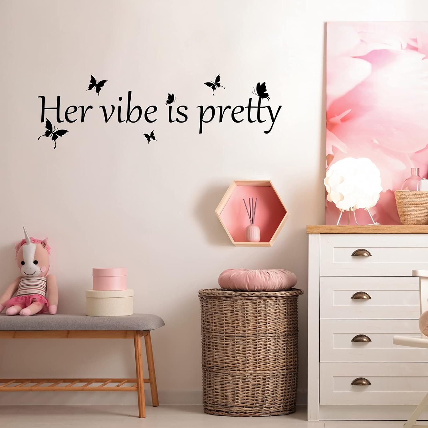 Transform your space with this stunning wall decal that combines artistic design and positive motivation. Featuring beautifully illustrated butterflies and the empowering quote "Her Vibe is Pretty", it adds a touch of beauty and confidence to any room or office.