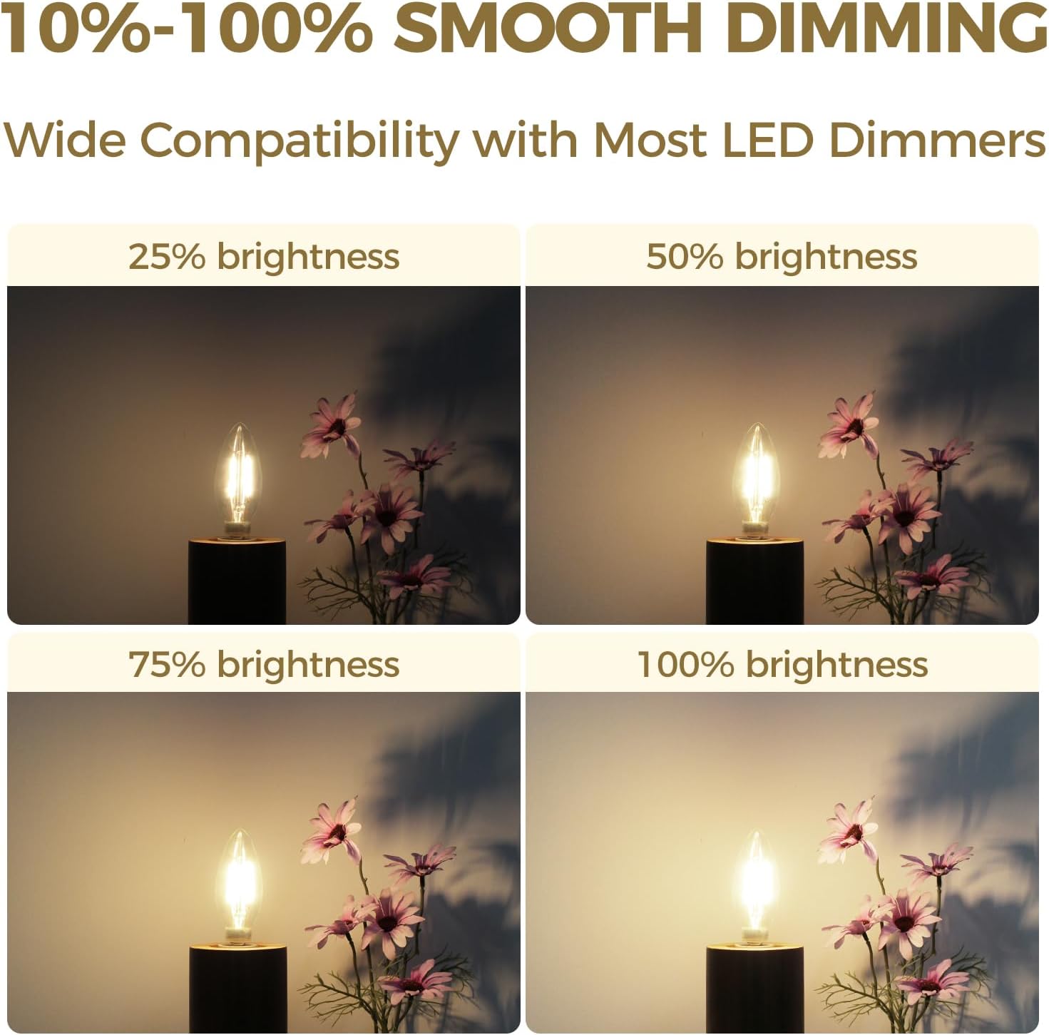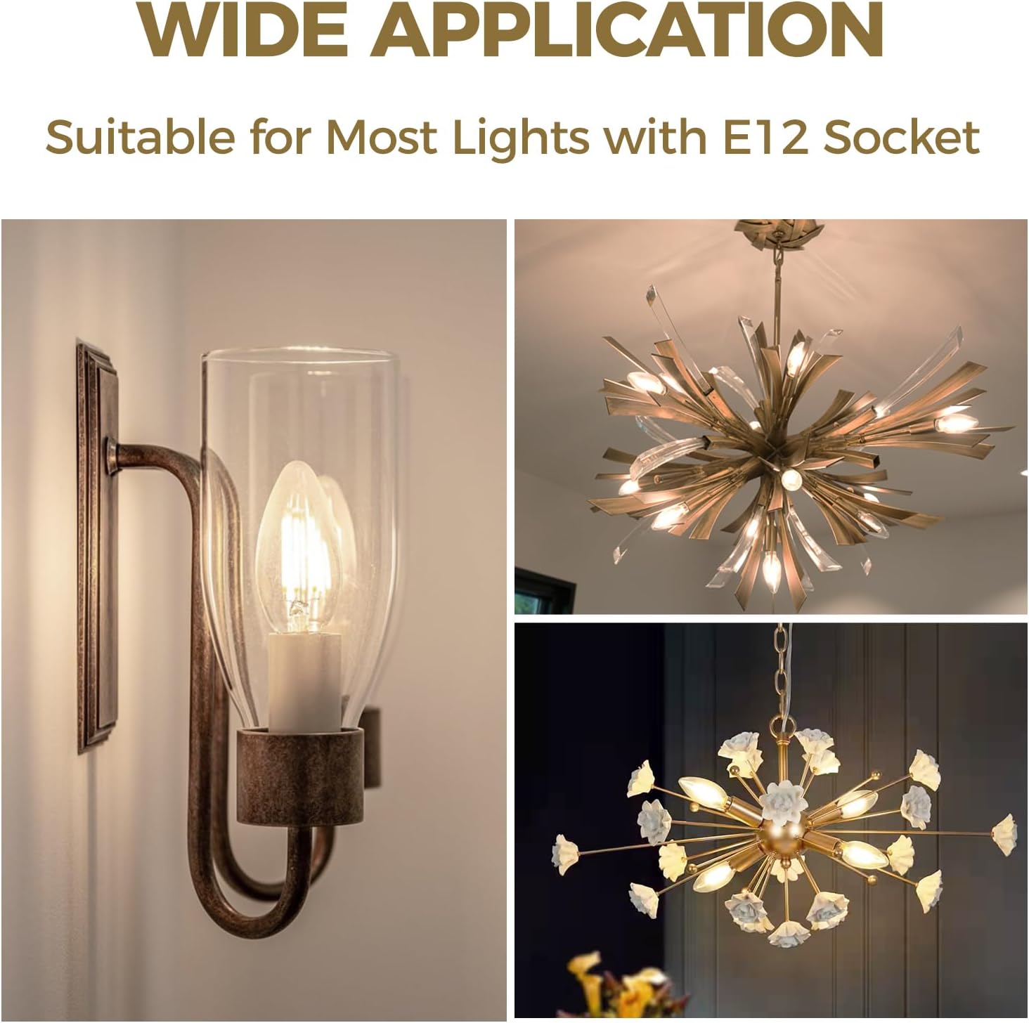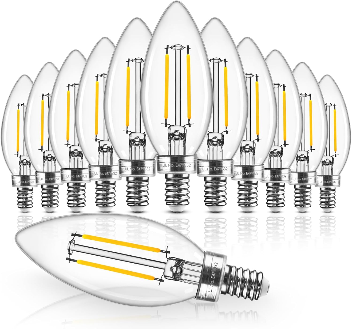 Enjoy the perfect balance of modern efficiency and classic charm with the Hizashi E12 candelabra LED bulbs. These bulbs deliver the same level of brightness as a traditional 60-watt bulb but use just 6 watts of energy, helping you save on electricity without sacrificing quality. Their soft white 3000K light emits a warm, inviting glow that enhances any room, whether you're lighting up your living space, bedroom, or dining area. The high color rendering index (90+) ensures that colors appear vivid and true, creating a more natural and beautiful lighting environment. With dimmable capability, these bulbs allow you to adjust brightness from 10% to 100% for a more personalized lighting experience. The smooth dimming features work without any flicker or noise, making them ideal for both functionality and ambiance. These compact bulbs are designed for easy installation in a wide range of fixtures, including chandeliers, sconces, and wall lamps. The 12-pack ensures you have all the bulbs you need for a seamless lighting setup throughout your home.Hizashi E12 Candelabra LED Bulbs