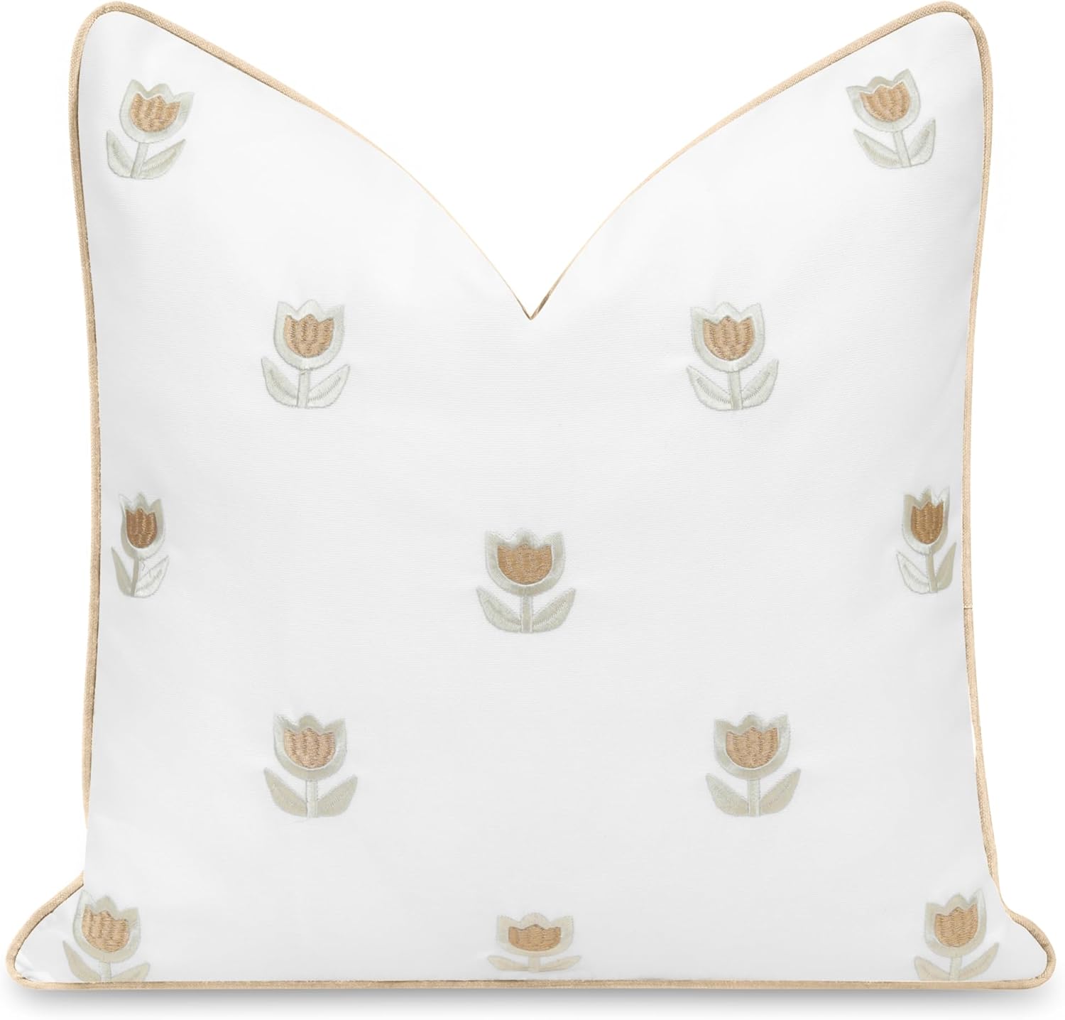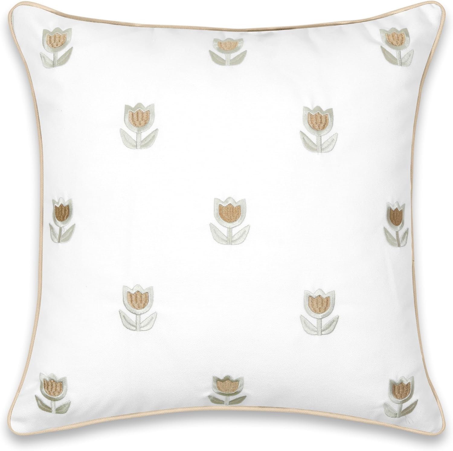 Bring a touch of coastal charm to your living space with this stylish and functional throw pillow cover. Featuring hand-embroidered tan tulips, it adds a beautiful, fresh aesthetic that's perfect for any room.