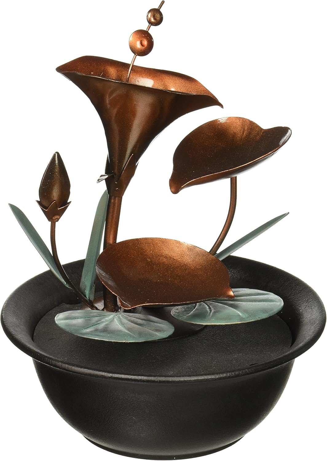 This Jeco Inc. FCT013 Metal Flower Table Top Fountain brings a touch of elegance to your outdoor space. Designed to enhance your patio or garden, its realistic flower motif adds beauty and serenity to any setting.