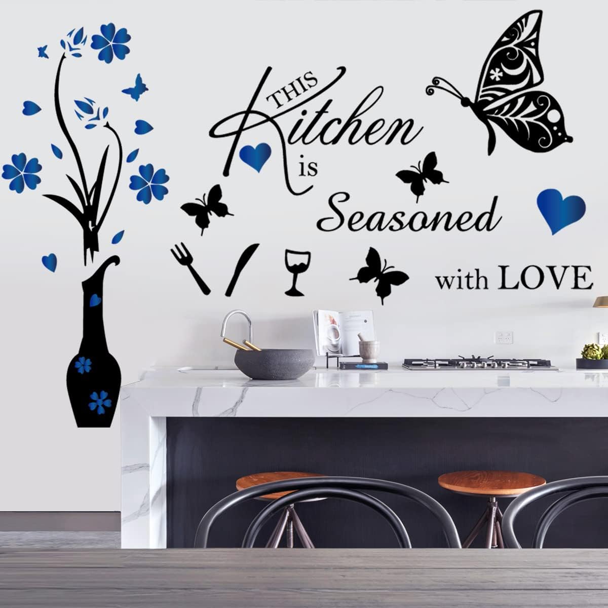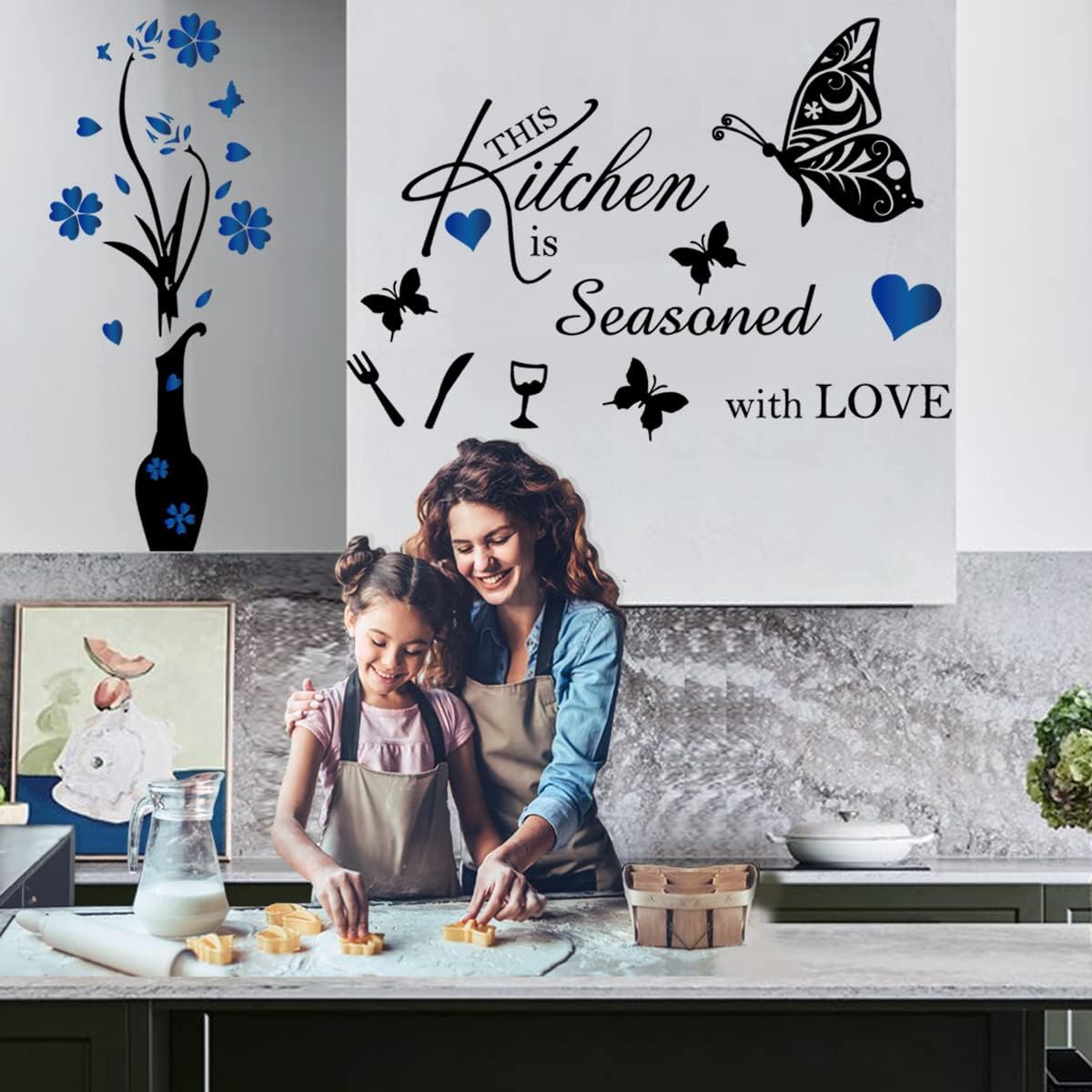 Transform your kitchen or dining area with our stunning wall decal, which blends a delicate vase, flower, and butterfly design with a powerful inspirational message. The clean black text paired with a vibrant blue heart offers a modern yet soothing aesthetic that seamlessly complements both traditional and contemporary spaces.